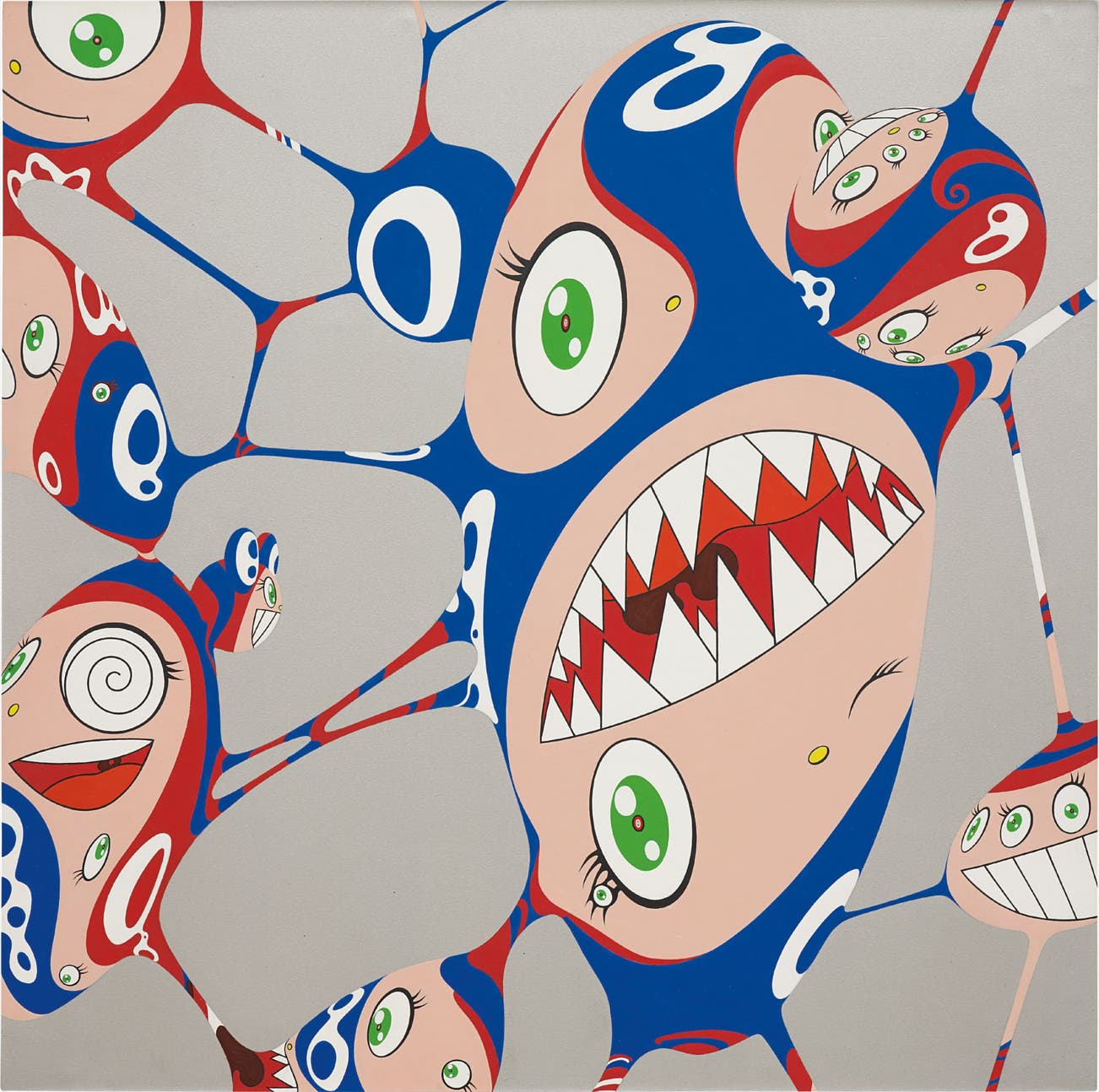 In the 1990s, Murakami founded the Superflat movement in an attempt to expose the "shallow emptiness of Japanese consumer culture." The artist plays on the familiar aesthetic of mangas, Japanese-language comics, to render works that appear democratic and accessible, all the while denouncing the universality and unspecificity of consumer goods. True to form, Murakami has done collaborations with numerous brands and celebrities including Kanye West, Louis Vuitton, Pharrell Williams and Google.