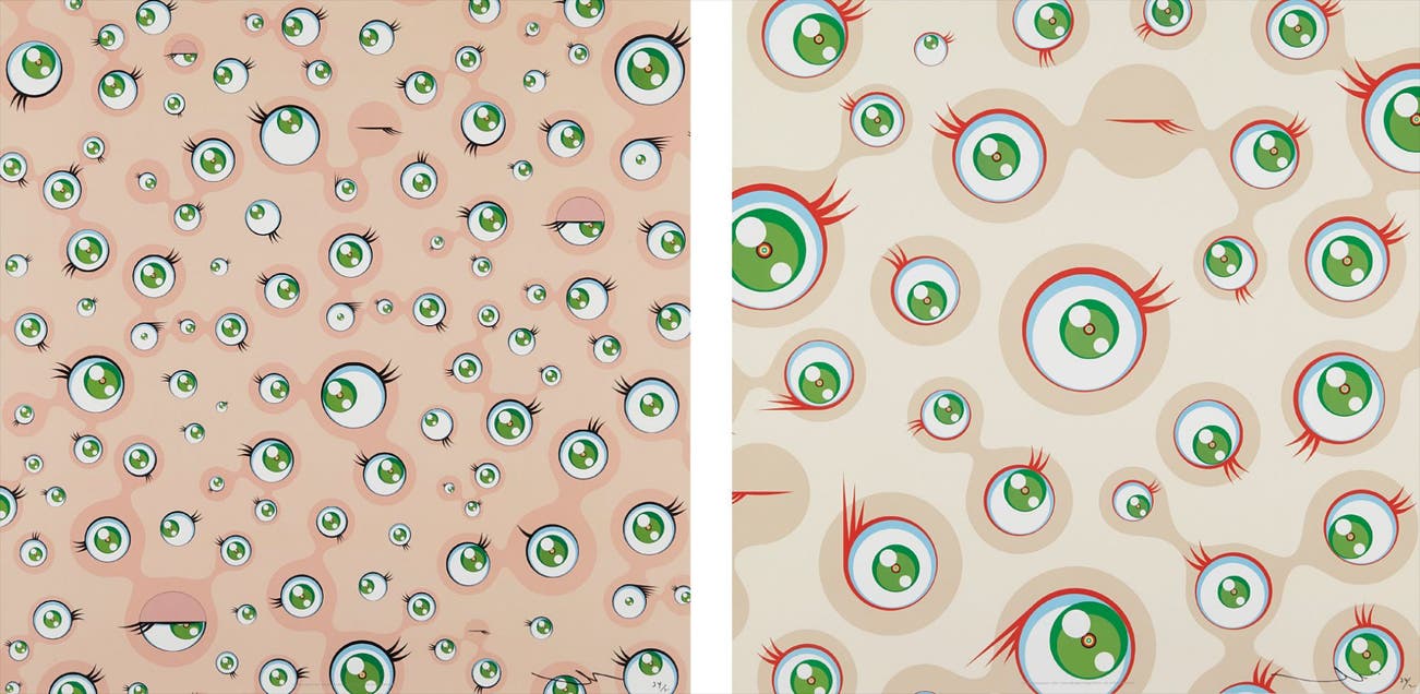 In the 1990s, Murakami founded the Superflat movement in an attempt to expose the "shallow emptiness of Japanese consumer culture." The artist plays on the familiar aesthetic of mangas, Japanese-language comics, to render works that appear democratic and accessible, all the while denouncing the universality and unspecificity of consumer goods. True to form, Murakami has done collaborations with numerous brands and celebrities including Kanye West, Louis Vuitton, Pharrell Williams and Google.