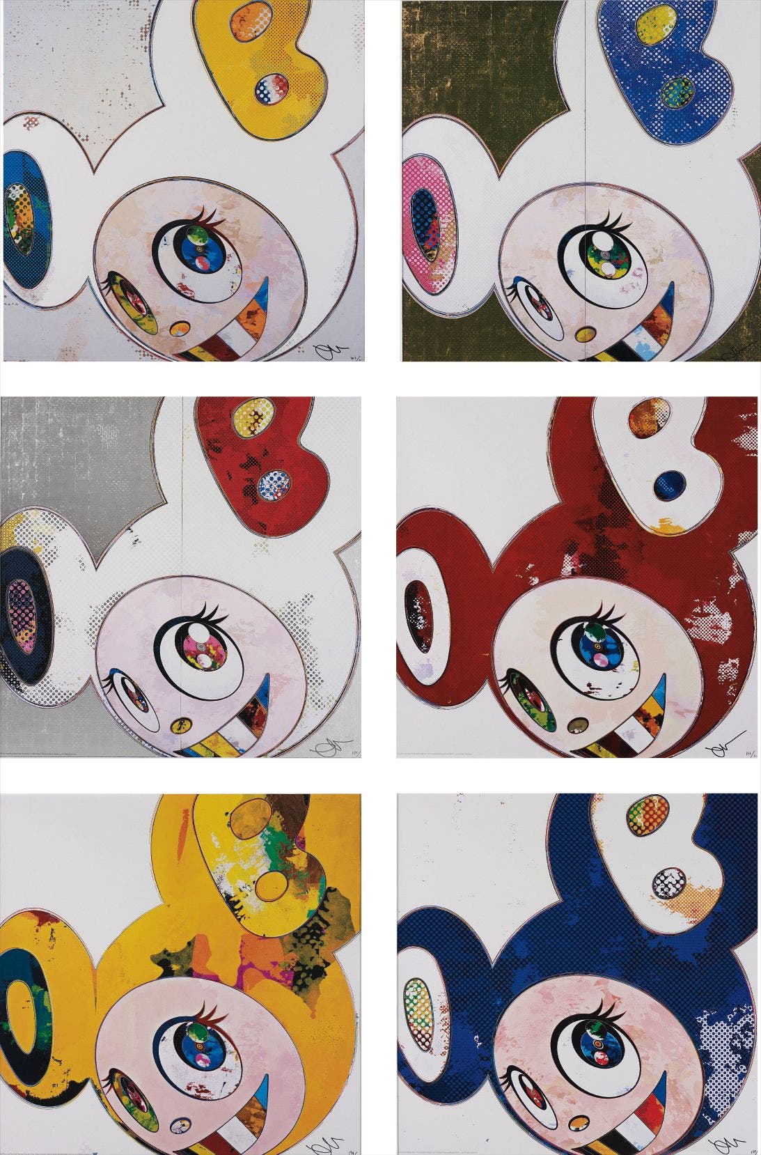 And Then x 6 (White The Superflat Method, Blue and Yellow Ears); DOB in Pure White Robe (Pink and Blue); And Then, And Then And Then And Then And Then. Yellow Universe; DOB in Pure White Robe (Navy & Vermilion) ; And Then x 6 (Red: The Superflat Method); and And Then x 6 (Marine Blue: The Superflat Method)