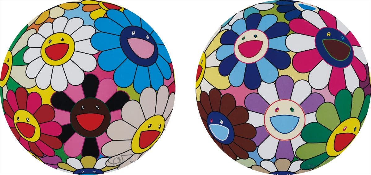 In the 1990s, Murakami founded the Superflat movement in an attempt to expose the "shallow emptiness of Japanese consumer culture." The artist plays on the familiar aesthetic of mangas, Japanese-language comics, to render works that appear democratic and accessible, all the while denouncing the universality and unspecificity of consumer goods. True to form, Murakami has done collaborations with numerous brands and celebrities including Kanye West, Louis Vuitton, Pharrell Williams and Google.
