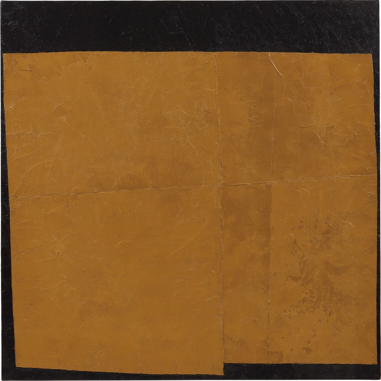 Rich ochre quadrants conjoin and interlock over a striking black background in a signature painting by Takeo Yamaguchi, a coveted pioneering figure of the Japanese modern art movement. Yamaguchi singularly created his own language of post-Cubist minimalist painting that has actively shaped definitions of post-war and contemporary Asian art. The imposing yet strict and concise forms of Ko create a sense of limitless expansion as the sculptural weight of the impasto invigorate and ground the work with body and depth, an impression that characterises Yamaguchi’s investigation into non-representational expression. Executed in 1965, the present lot epitomises not only the peak of Yamaguchi’s esteemed career but also a distinctive transition from paintings he produced in the 1960s that illustrate an increase of rectangular planes to works that defined his style in the 1970s, as his abstract shapes gradually dominated the canvas.