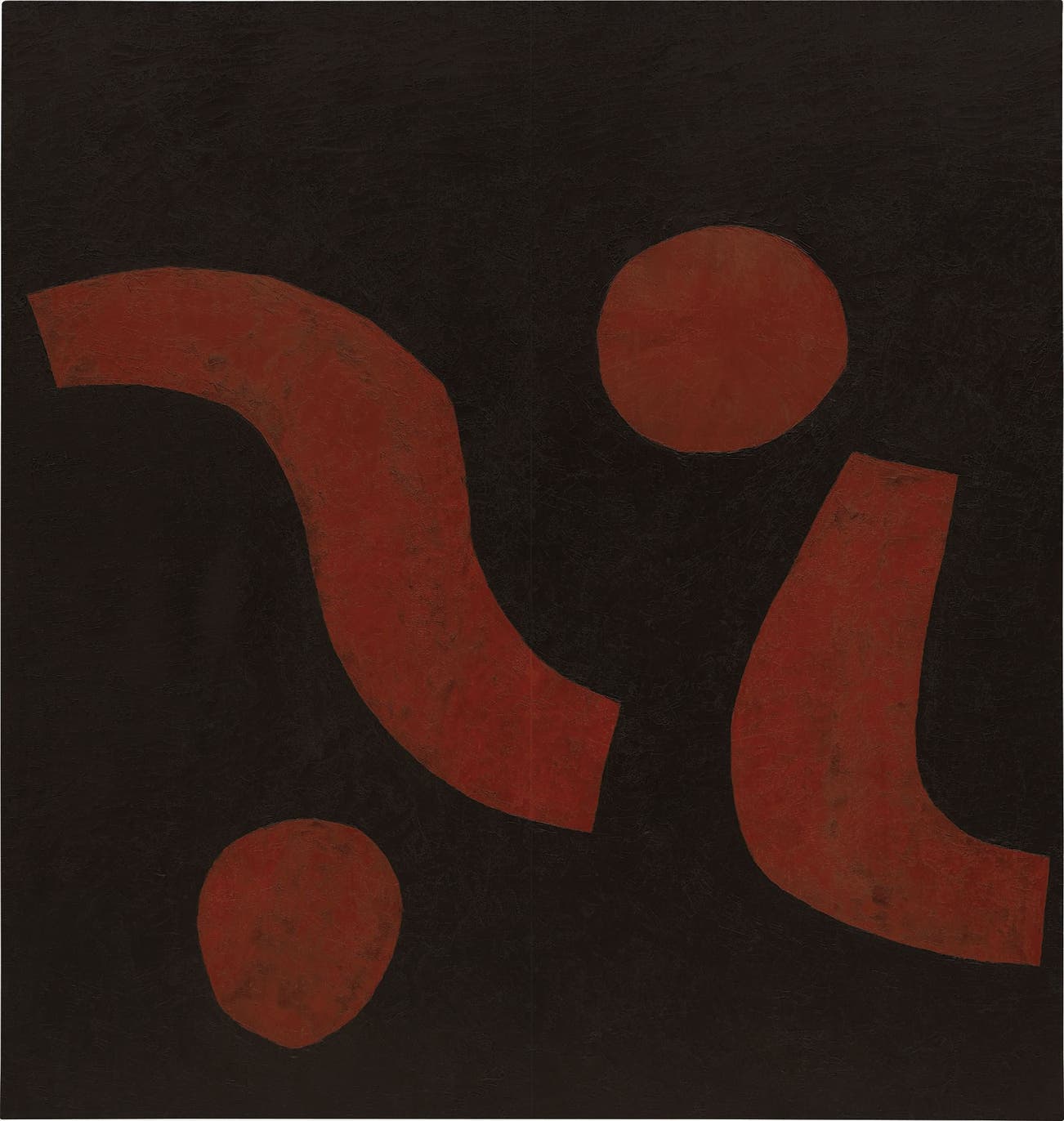 The present piece, Work, was exhibited during an extremely early iteration of the Tokyo Biennale, then named the International Art Exhibition of Japan, in 1953. Set up by the Mainichi Newspaper in 1952, the International Art Exhibition was a key platform for leading artists to gain global exposure in the immediate post-war era, and the current work’s inclusion in this show is an undoubted testament to its quality and innovative appeal. Work is an early piece exhibiting Yamaguchi’s signature style: pieces composed of defined geometric shapes in deep red or yellow ochre, smoothed onto canvases using a palette knife and set against a dense black background. Far from merely emulating the Art Informel and Abstract Expressionist styles that were becoming prominent and popular in Japan in the fifties and sixties, Yamaguchi deftly showed his bold attempts to reconcile Eastern minimalism with Western mediums. A willful individualist and pioneer of abstract art, Yamaguchi would go on to have his works included in the collections of various prestigious institutions, most notably the Guggenheim, which included the artist’s work in its inaugural exhibition, Inaugural Selection, in 1959, as well as the Museum of Modern Art and the National Museum of Modern Art, Tokyo, attesting to the high caliber of his pieces and his historical significance as a painter.