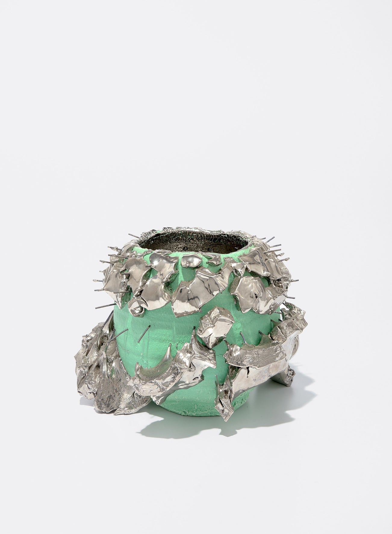 glazed ceramic and cast silver