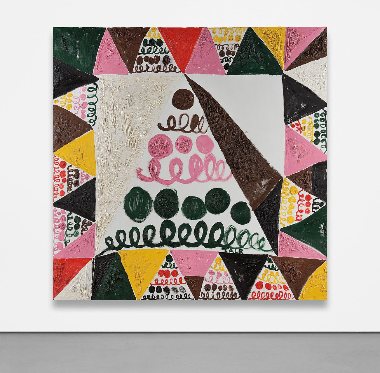 signed "TAL R" lower center; further titled "GOLd IS OVER" on the overlap; further signed, titled and dated "2005 Tal R "gold IS OVeR" on the reverse; further signed, titled and dated "TalR 2005 "gold IS OVeR"" on the stretcher