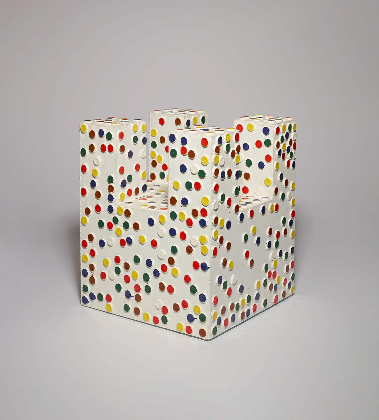 acrylic and bottle caps on wooden panel