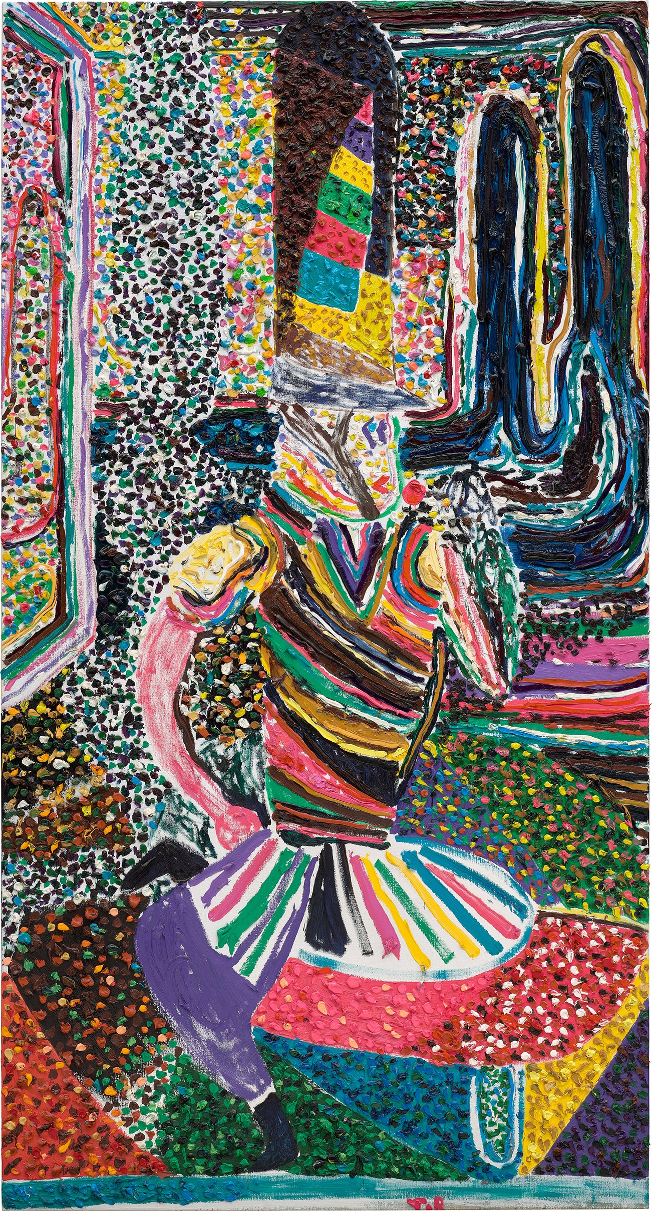 signed with the artist's initials 'T.R' lower right; signed, signed with the artist's initials, titled and dated 'Tal R "Horserider from Lolly" 2012 T.R' on the stretcher