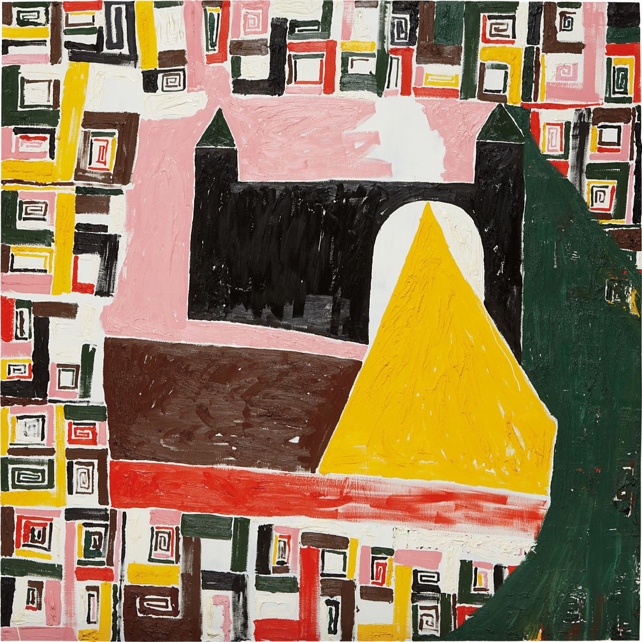 oil, paper, chalk on canvas