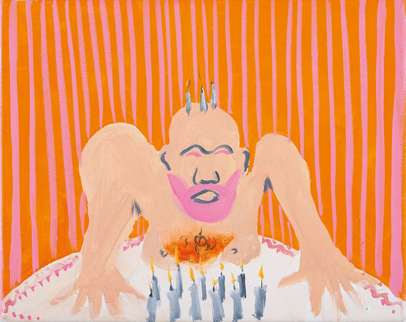 Signed 'Madani' on the reverse and titled 'Orange Burn' on the overlap.