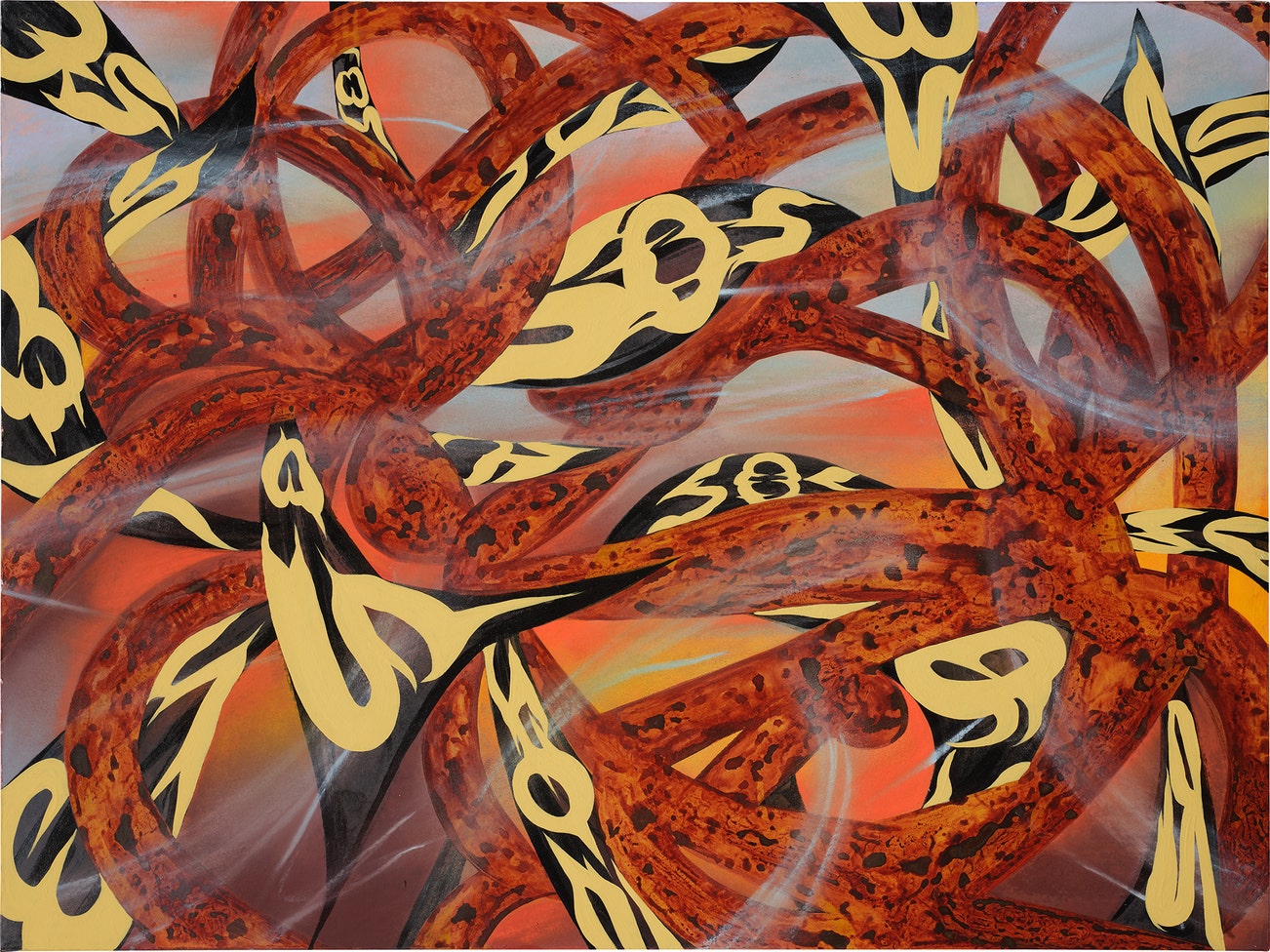 watercolour, vinyl paint and pastel on paper laid on panel