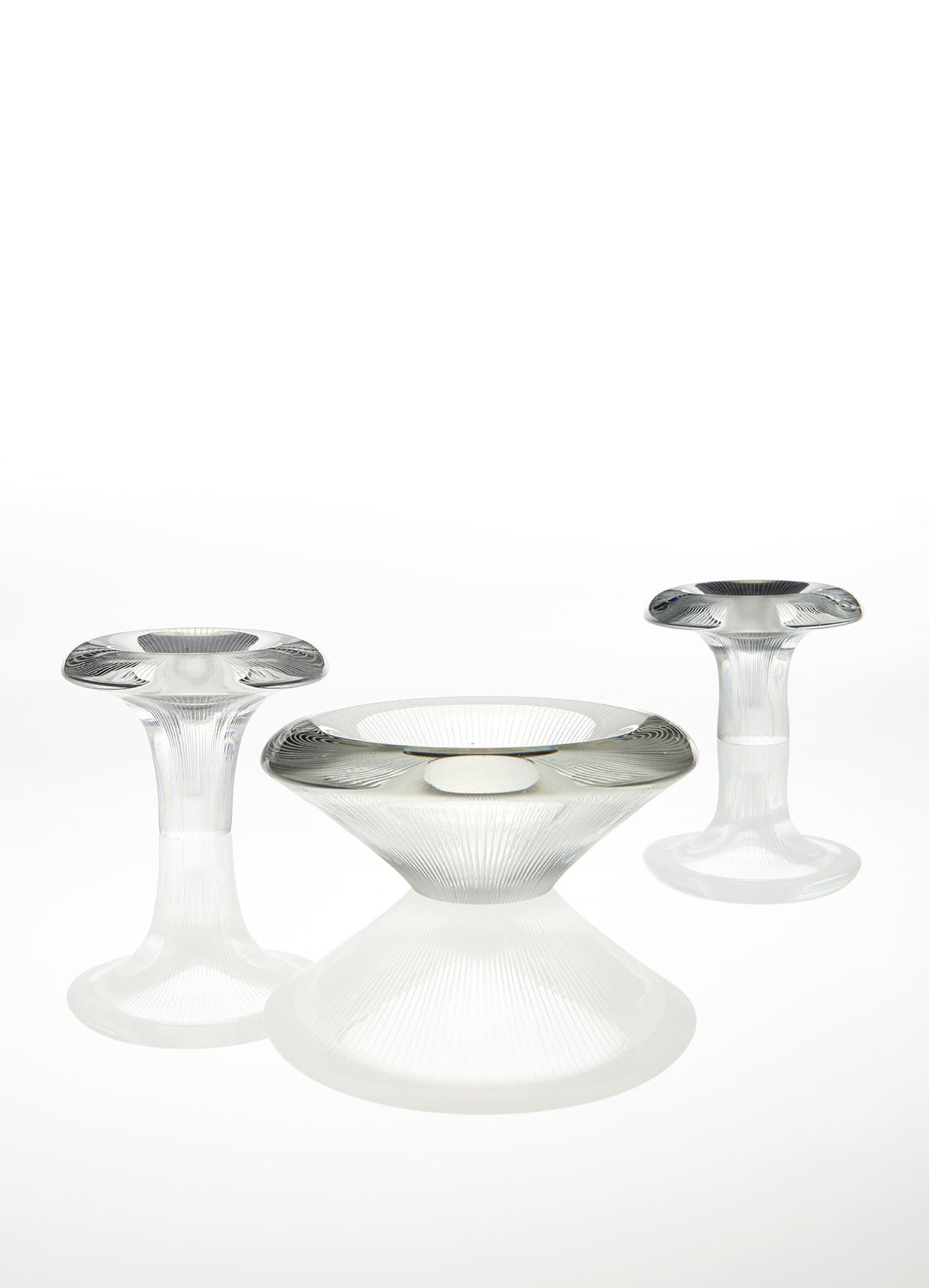 Produced by Iittala, Helsinki, Finland. Underside of each incised TAPIO WIRKKALA - IITTALA - one vase dated 54 and plate 55.