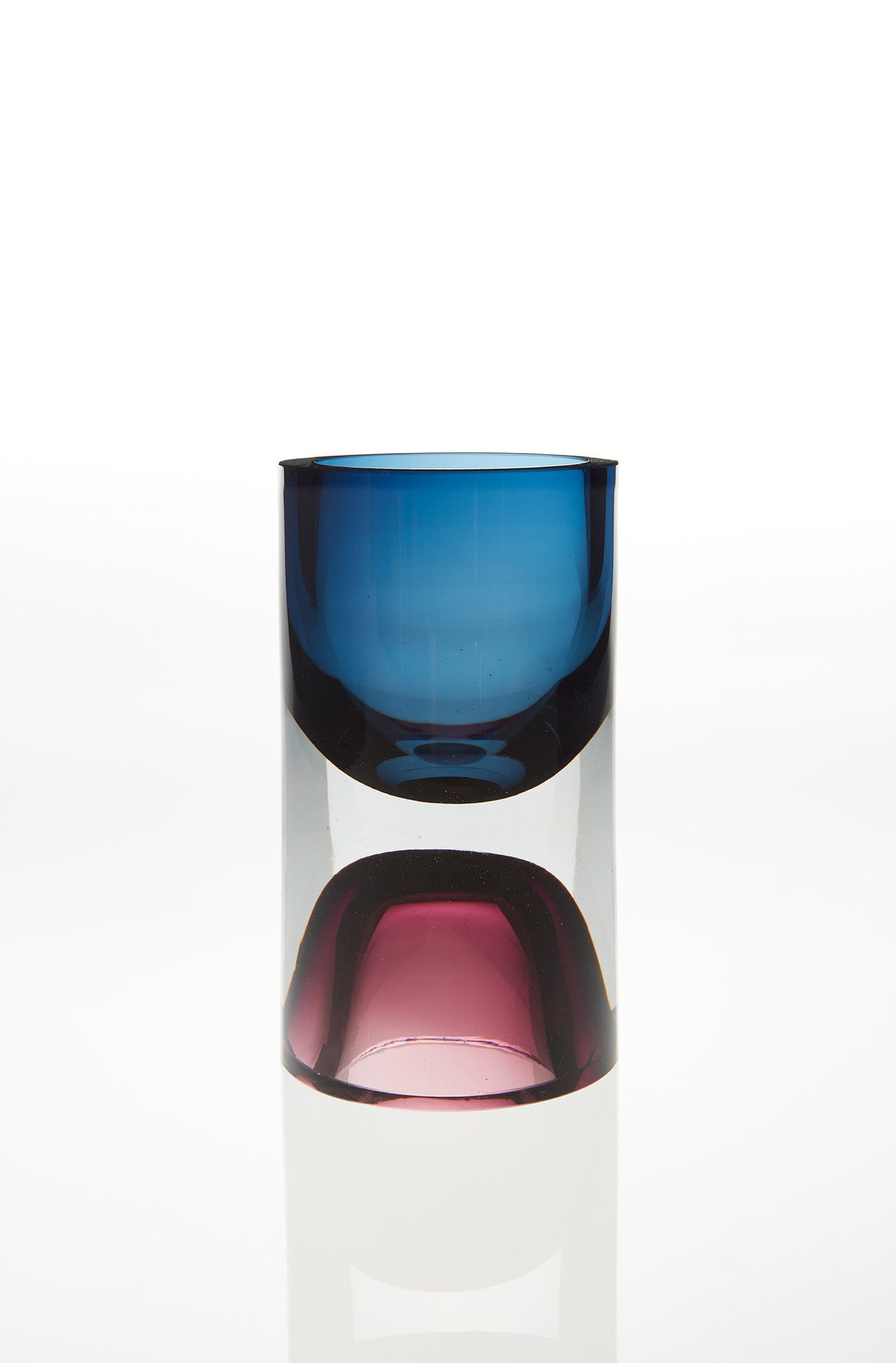 Mould-formed cased and flashed crystal glass, rim cut, sandblasted, acid matted.