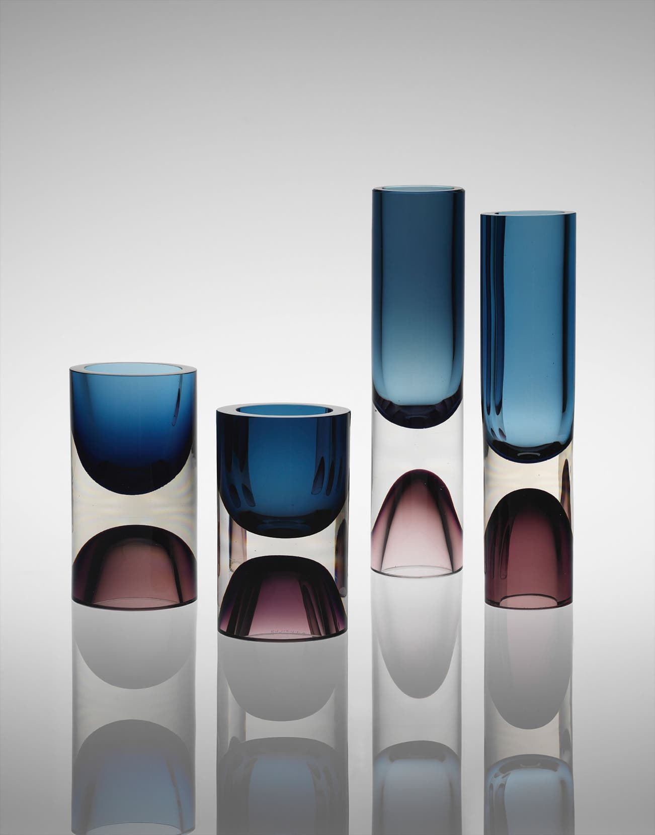 Mould-formed cased and flashed crystal glass, rim cut, sandblasted, acid matted.