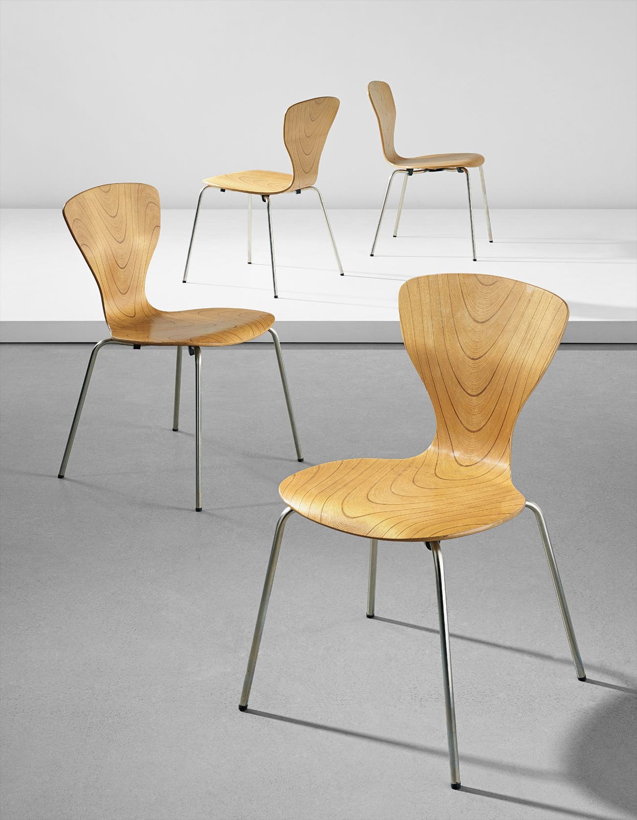 Rhythmic laminated-birch plywood, nickel-plated tubular steel, rubber.