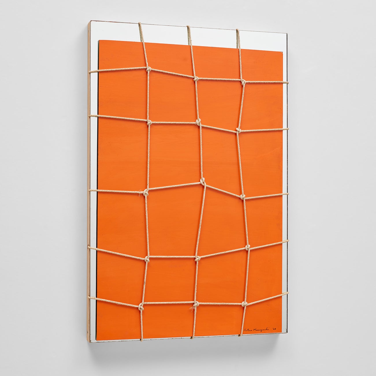 signed and dated 'Tatsuo Kawaguchi '68' lower right; signed, titled and dated 'Tatsuo Kawaguchi 1968 Between mirror and mirror [in English and Kanji]' on the reverse