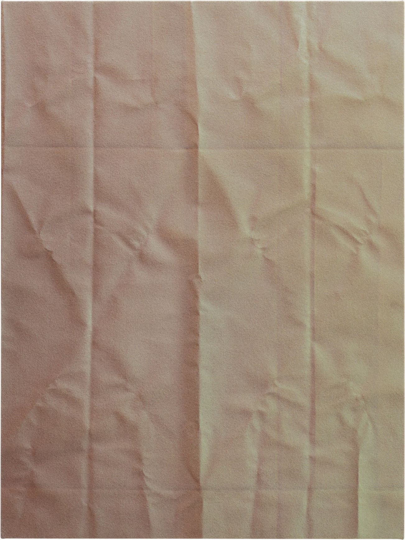 Untitled (Fold) is an exquisite illustration of these investigations; its form oscillates between the supposedly incompatible second and third dimension, thus challenging the viewer to confront the distinctions between image, dimensionality and content. The artist articulates her intentions with this eloquent series, "for the last two years I have tried to conjure four-dimensional space. The Fold paintings are my effort to construct a portal through which to summon - or at least imagine - this inaccessible hyper-spatial reality." The present lot masterfully utilises the ‘trompe l’oeil’ technique that leads the viewer to believe they are observing the three dimensional surface of creased paper. Upon approaching, one realises the canvas is actually stretched taut over the supporting wooden frame.