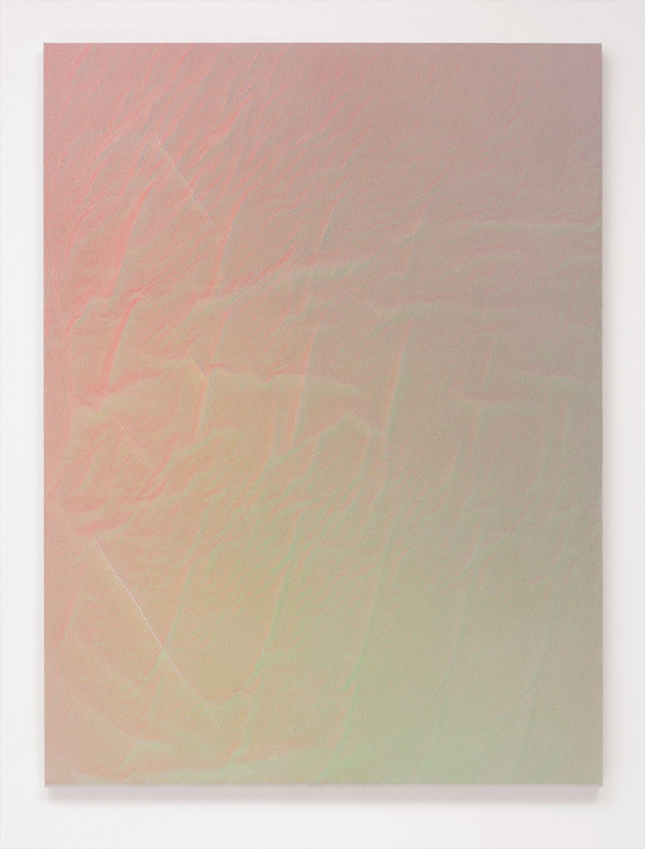 The artist’s own attention to detail and interest in exploring the planes of reality easily place her into the lineage of still life painting, although her own technique is completely unprecedented. In Untitled (Fold), the subject matter becomes both medium and method. The artist’s consideration for and awareness of dimensionality, perception and presentation render the piece a kind of topographical study on the relationship between material states and the interaction of elements. ‘Because I spray the released canvas directionally, the pigment acts like a raking light and freezes a likeness of the contoured materials onto itself. It develops like a photo as I paint. The record of that topological moment is carried forward after the material is stretched. Each point on the surface contains a record of itself in that previous state.’ (T. Auerbach in C. Bedford, ‘Dear Painter...,’ Frieze, March 2012). The subtle dimensionality she creates provides a compelling optic reverberation.