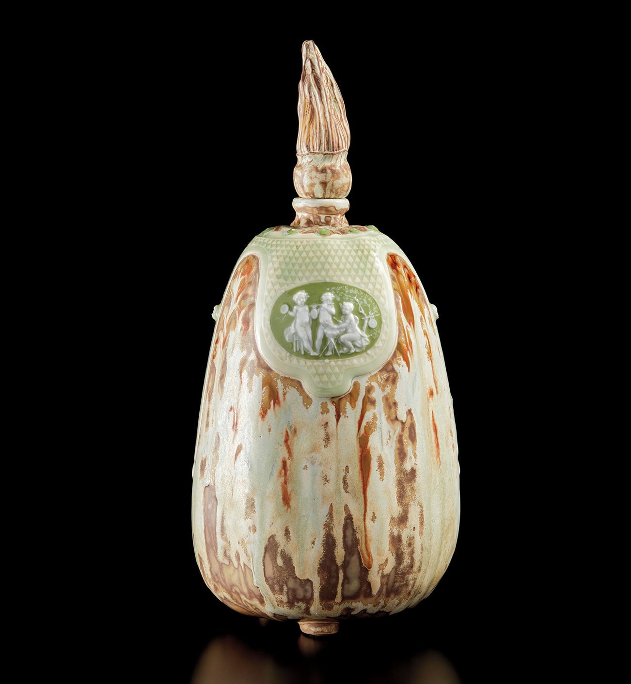 Glazed porcelain with pâte-sur-pâte decoration.
