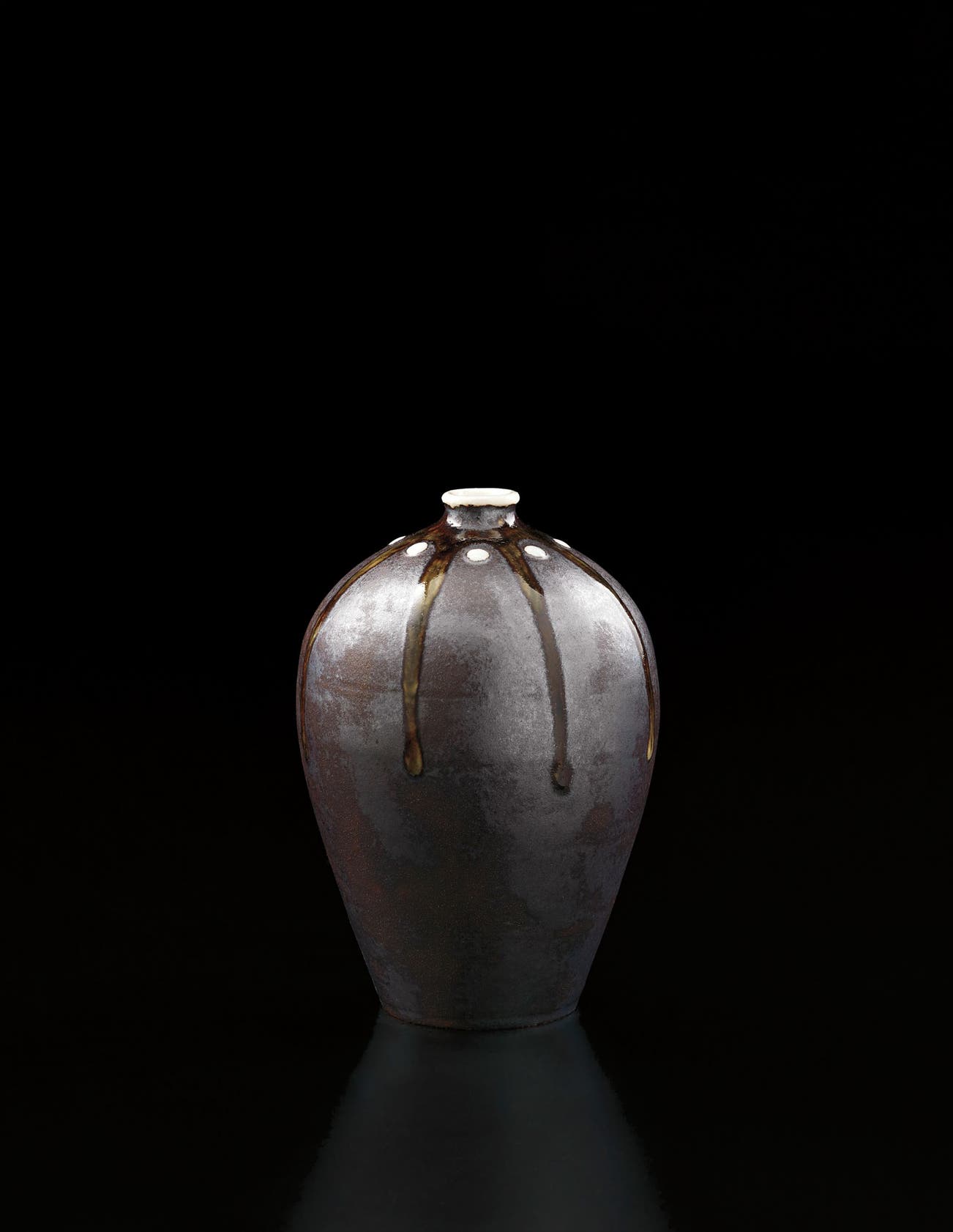 Porcelain with iron and ash glazes.
