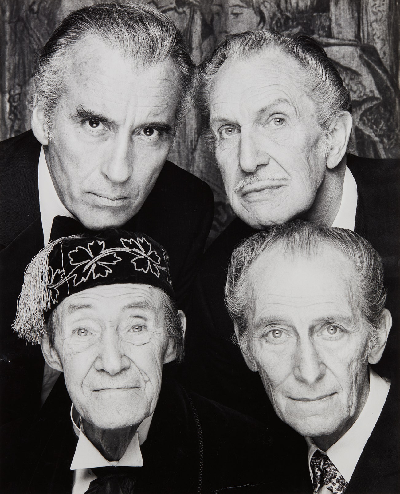 Christopher Lee, Vincent Price, John Carradine and Peter Cushing in Costume for 'The House of Long Shadows', Hampshire, England