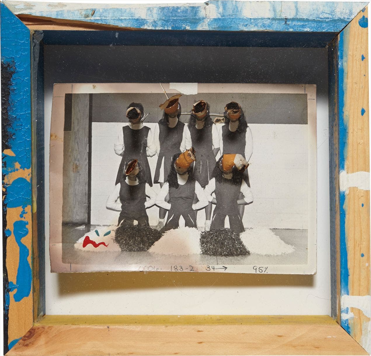 acrylic, cigarettes on gelatin silver print, in artist's wood and Plexiglas box