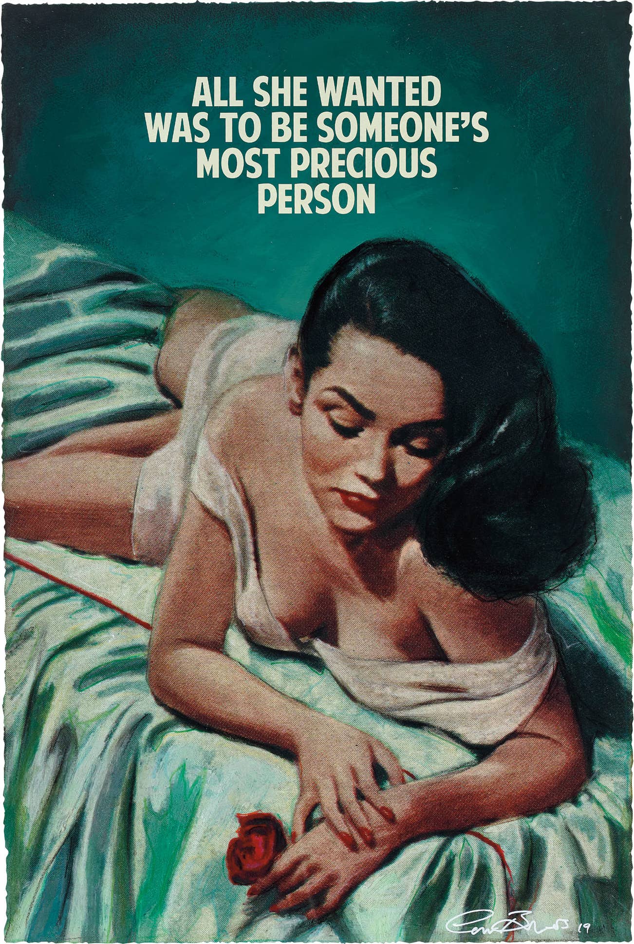 Best known for their Pulp Fiction series, the pair are also known for their activist work and their playful hoaxes. In 2014 they created a fictional museum -The Hanbury Collection, which fused truth and fiction in such a way as to render it impossible to work out which exhibits were real and which were not. This obsession with truth and fiction can be seen throughout their work, and is particularly relevant in the current climate of fake news, post-truth, and social media obsession.