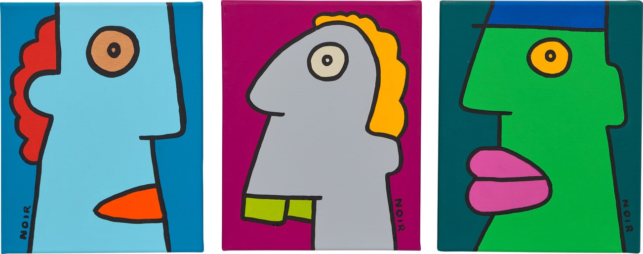 (i) signed 'NOIR' lower left; further signed, titled and dated 'THIERRY NOIR 28.03.2020 "NO MORE TIME TO THINK, ALWAYS STRAIGHT-AHEAD NOW" ' on the overlap