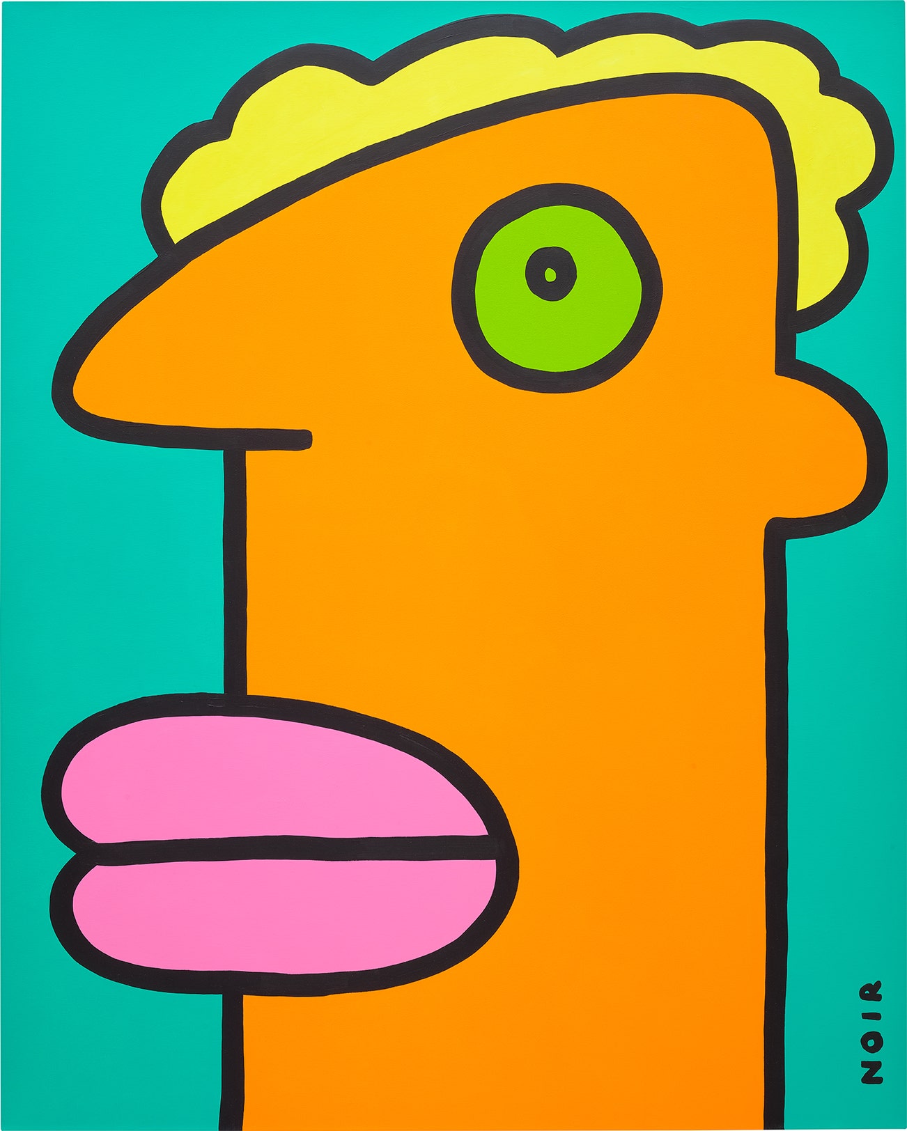 signed 'NOIR' lower right; signed, titled and dated 'THIERRY NOIR 28 MAY 2020 MY NEW HAIRSTYLE MAKES ME FEEL MORE COMFORTABLE' on the overlap