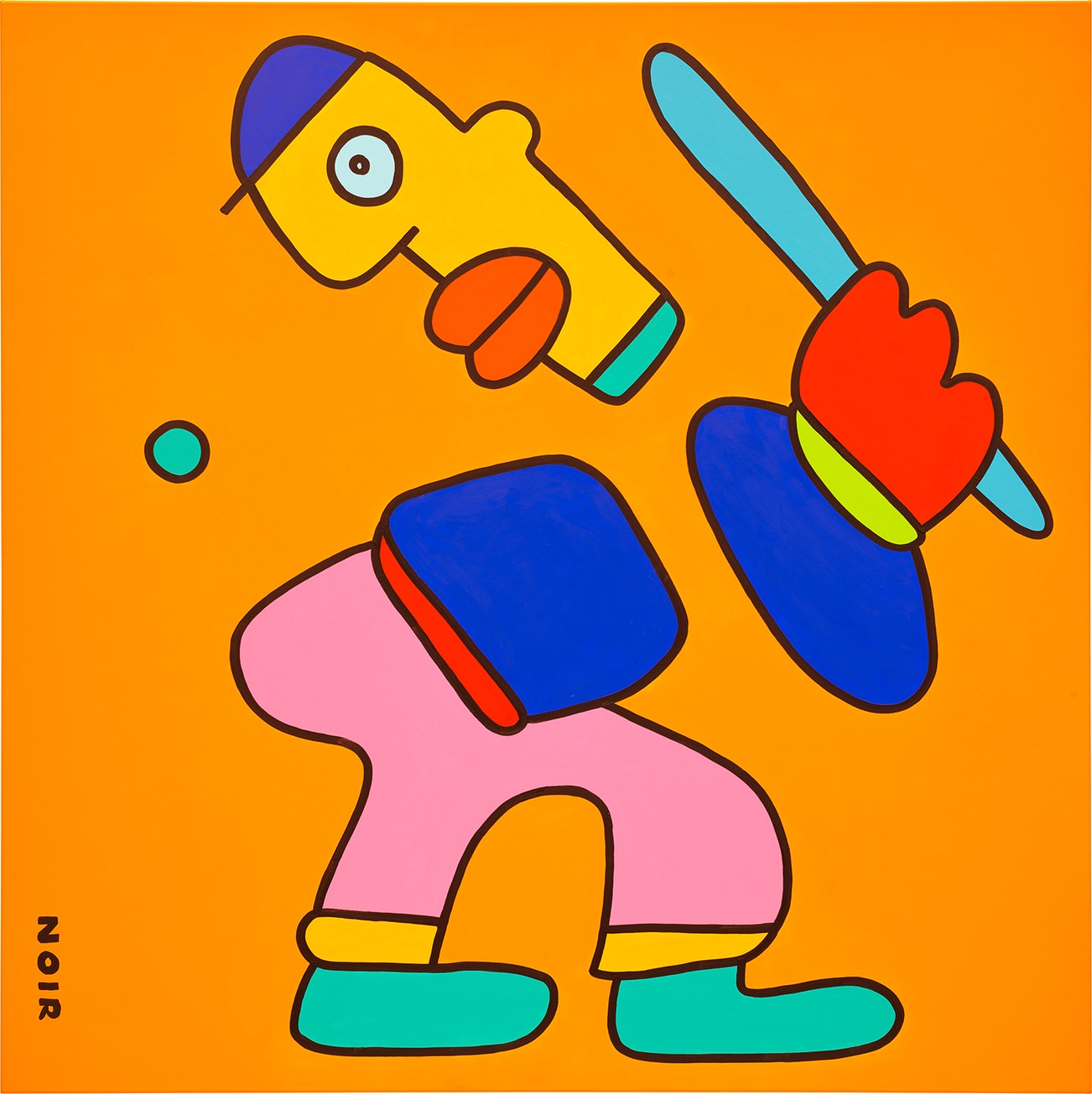 signed "NOIR" lower left; signed, titled and dated "BASEBALL NOIR 2024 THIERRY NOIR" on the overlap