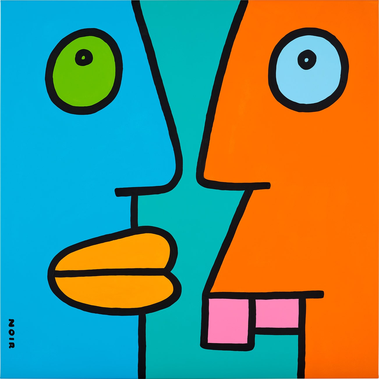 signed 'NOIR' lower left; further signed, titled and dated 'THIERRY NOIR 19 December 2021 "THE DIALOGUE PAUSES FOR A RELATIVELY SHORT TIME"' on the overlap