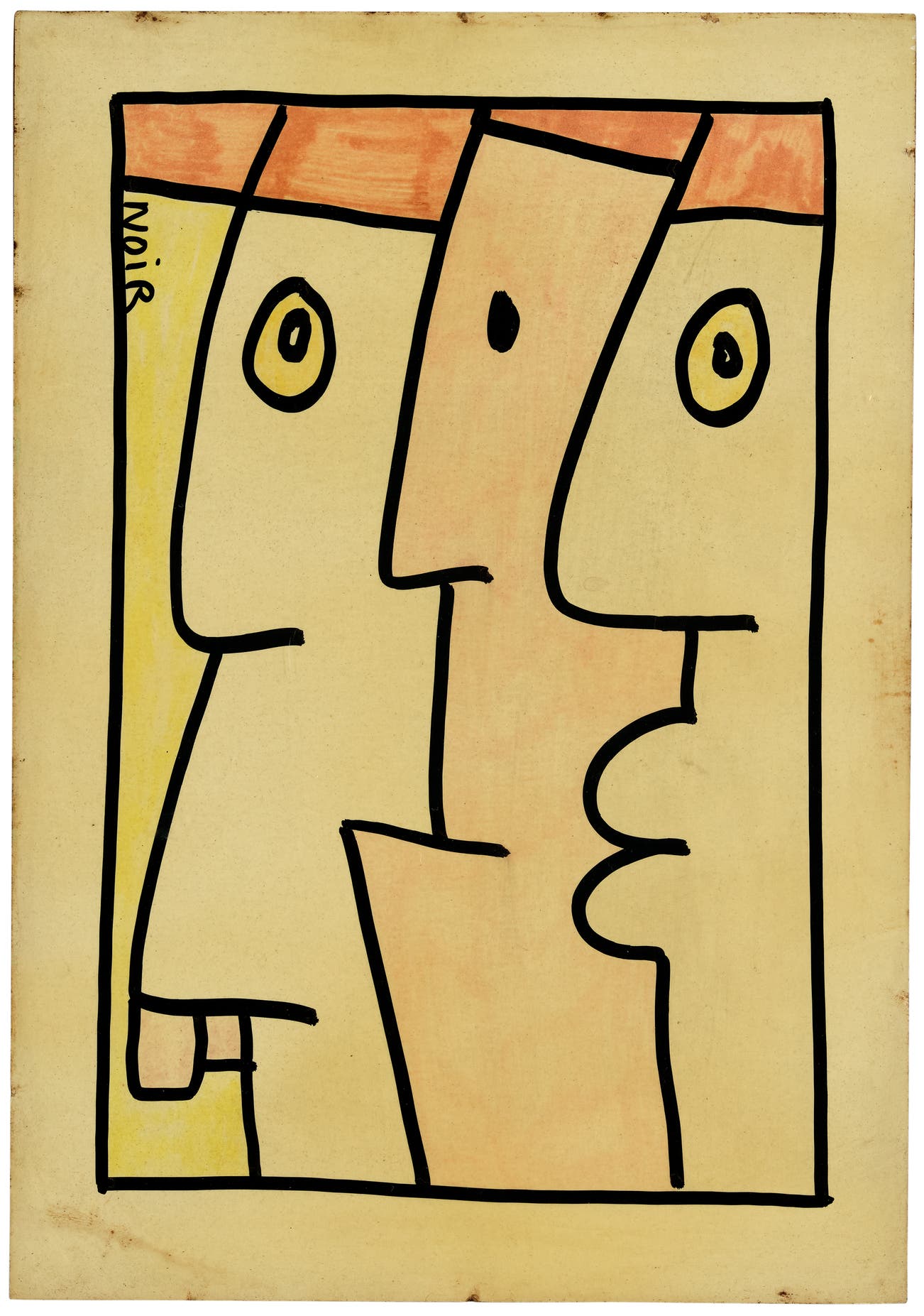 signed 'NOIR' upper left; further signed, titled and dated 'THIERRY NOIR Dimanche 22 Octobre 1989 "A la sortie du cinéma, des regards perplexes."' on the reverse
