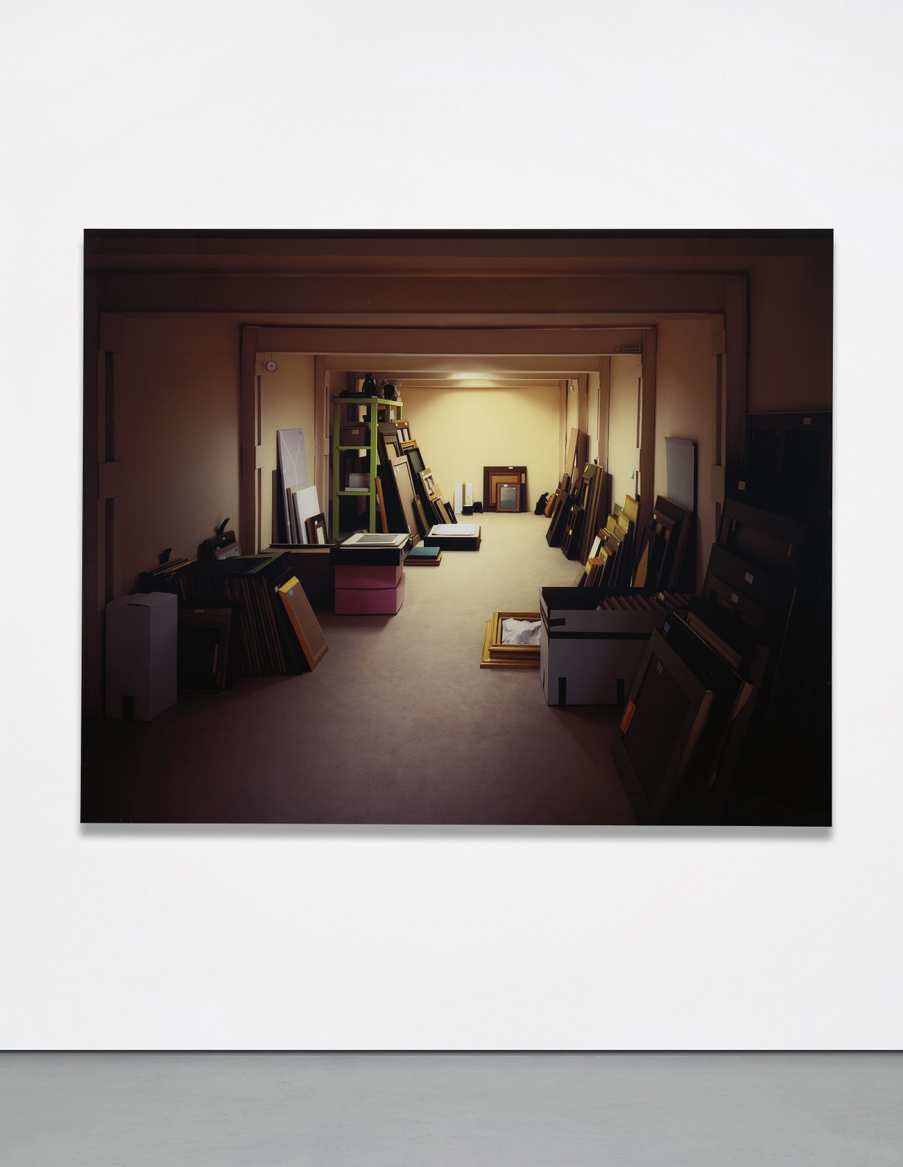 The present lot is modeled on a photograph Demand saw in the New York Times in 2011. The original, as well as Demand's simulacra, is an image of the Wildenstein Institute vault in Paris that was raided by police because it was suspected that concealed within its walls were several works looted by the Nazis during the Second World War. Dozens of works were uncovered of which the Wildenstein family claimed to have no record. Vaults and storage facilities of galleries and museums have served as inspiration for many contemporary artists, the quintessential example being Fred Wilson’s 1994 exhibition Mining the Museum. During this exhibition Wilson ‘mined’ the vaults of the Maryland Historical Society and curated a show in which he juxtaposed the artifacts he found as a way to address the historical injustices that emerge when histories are put on display. While Demand's work is not as overtly political, it does follow suit with a politically ‘hot’ subject and raises questions regarding repatriation of stolen and looted artworks and artifacts and the lack of regulation in the global trade of art.