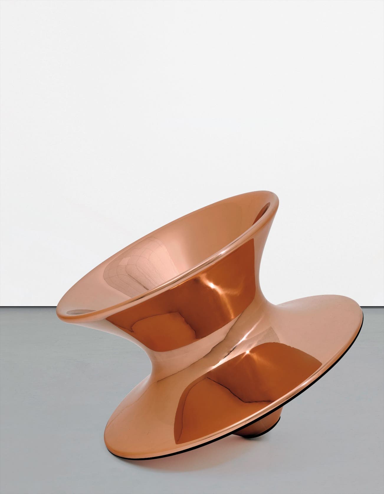 Polished copper, leather.