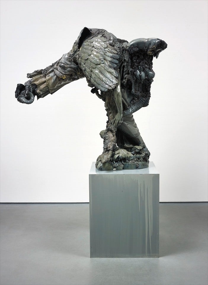 mixed media sculpture and wooden base