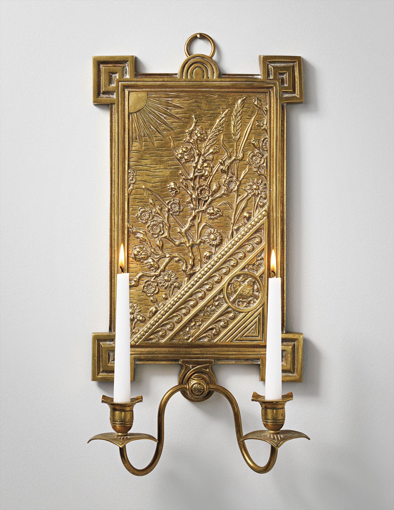 While Jeckyll had previously worked with the Barnard, Bishop & Barnards foundry in Norwich on both his exhibition works and commercially produced models, his declining health in the final years of his life necessitated that his brother, Henry Jeckyll (1838-1917), a founder at Robbin’s & Company in Dudley, take over his affairs. These circumstances are to attribute to the firm’s production of the present lot, the patent for which is recorded in the Public Registry Office in Kew. A similar example of an oval-formed brass wall applique of the same manufacture, with the central relief depicting two swallows amidst plum-blossomed branches, is in the collection of the Victoria and Albert Museum, London.