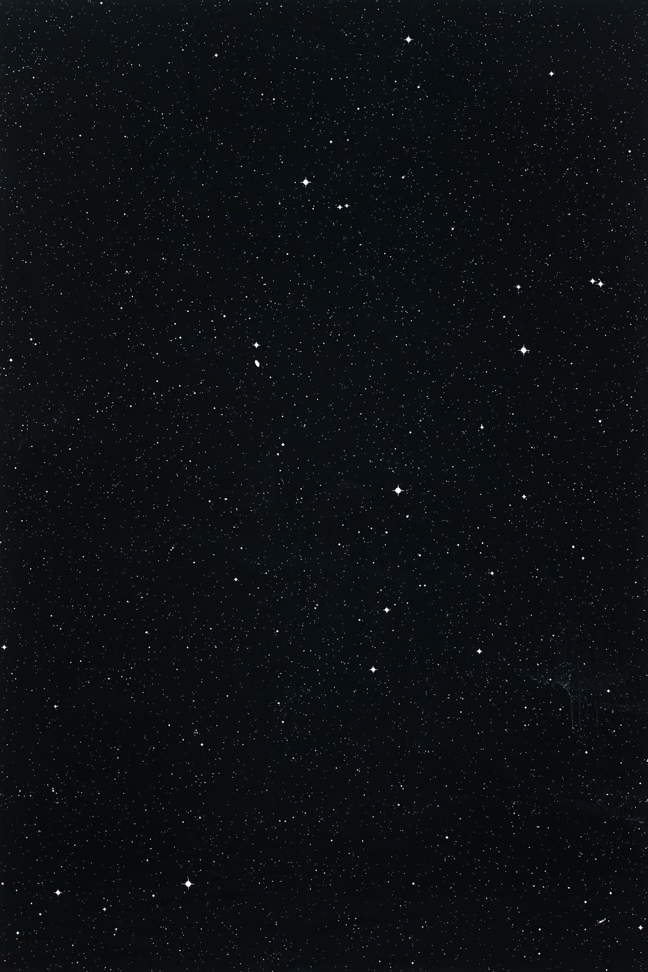 In the Sterne or Stars series (1989 -1992) Ruff took the objectivity of documentation in photography into a dialogue about reality and art. He had started this conversation with his earlier large and seemingly dispassionate portraits and his cool depictions of Post-War buildings in Germany. But in the Sterne series Ruff took it further by employing negatives that he himself did not make. Instead he used high-resolution (29 x 29cm) negatives that he had obtained from the archives of the European Southern Observatory – which he cropped to his own artistic desires and had printed in a lab in Düsseldorf to his specifics. Ruff “repositioned” these negatives of the night sky above Chile to create his own art – utilizing them as a tool (such as paint or paper) with which to build a work of art. This transformation from scientific document to art is experienced in Sterne 23 h 39m/-55˚ where a seemingly objective and specific image is experienced as abstracted beauty.
