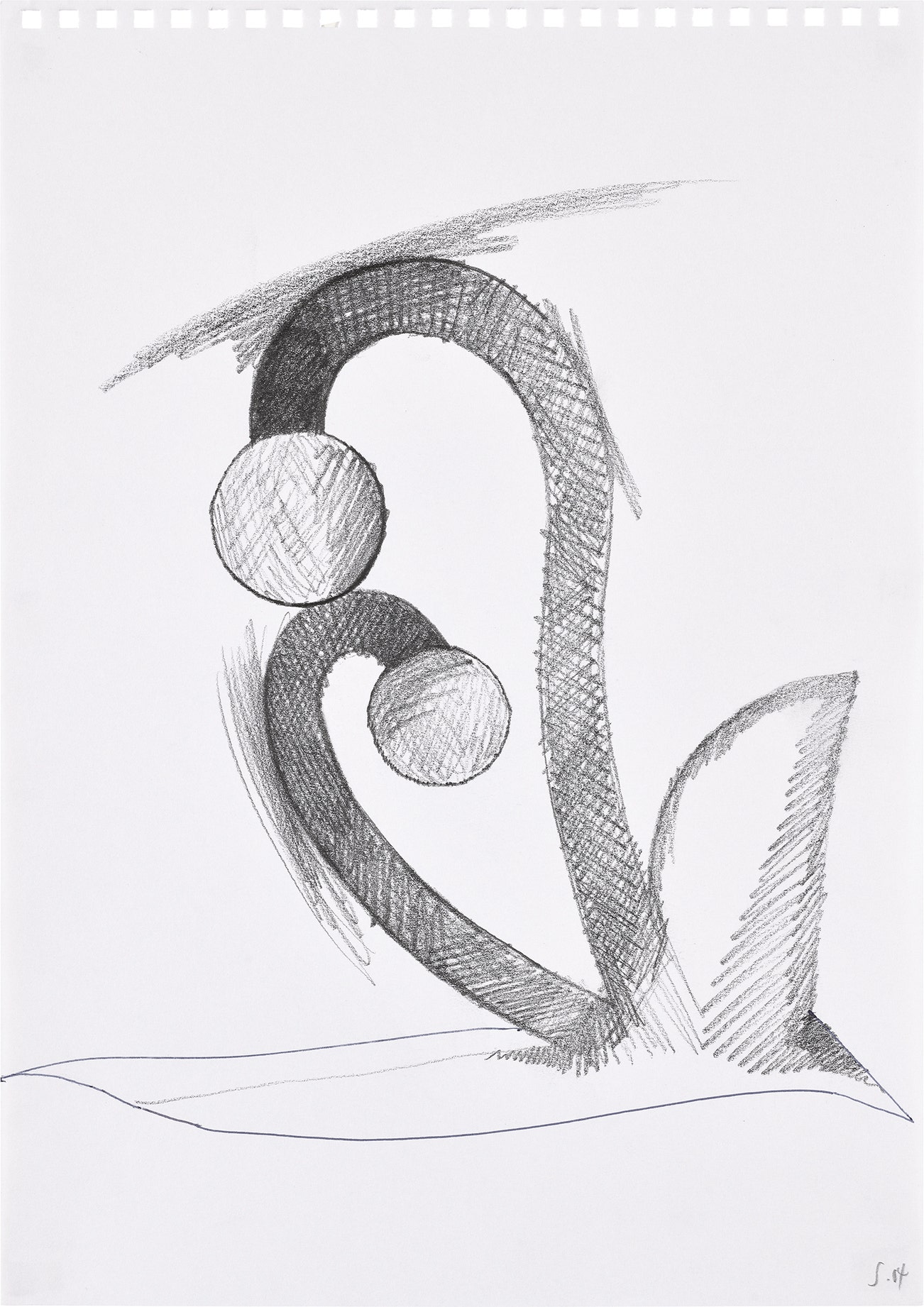 Unique pencil and blue ink drawing, on wove paper.