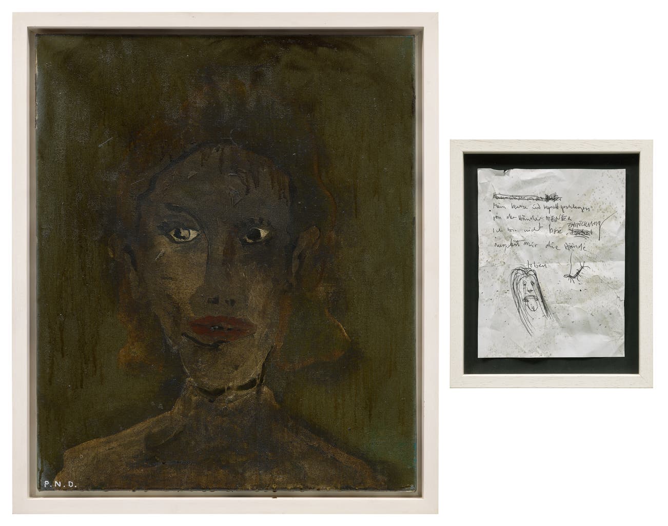 acrylic and oil on canvas and mixed media on paper, in artist's chosen frames, in 2 parts