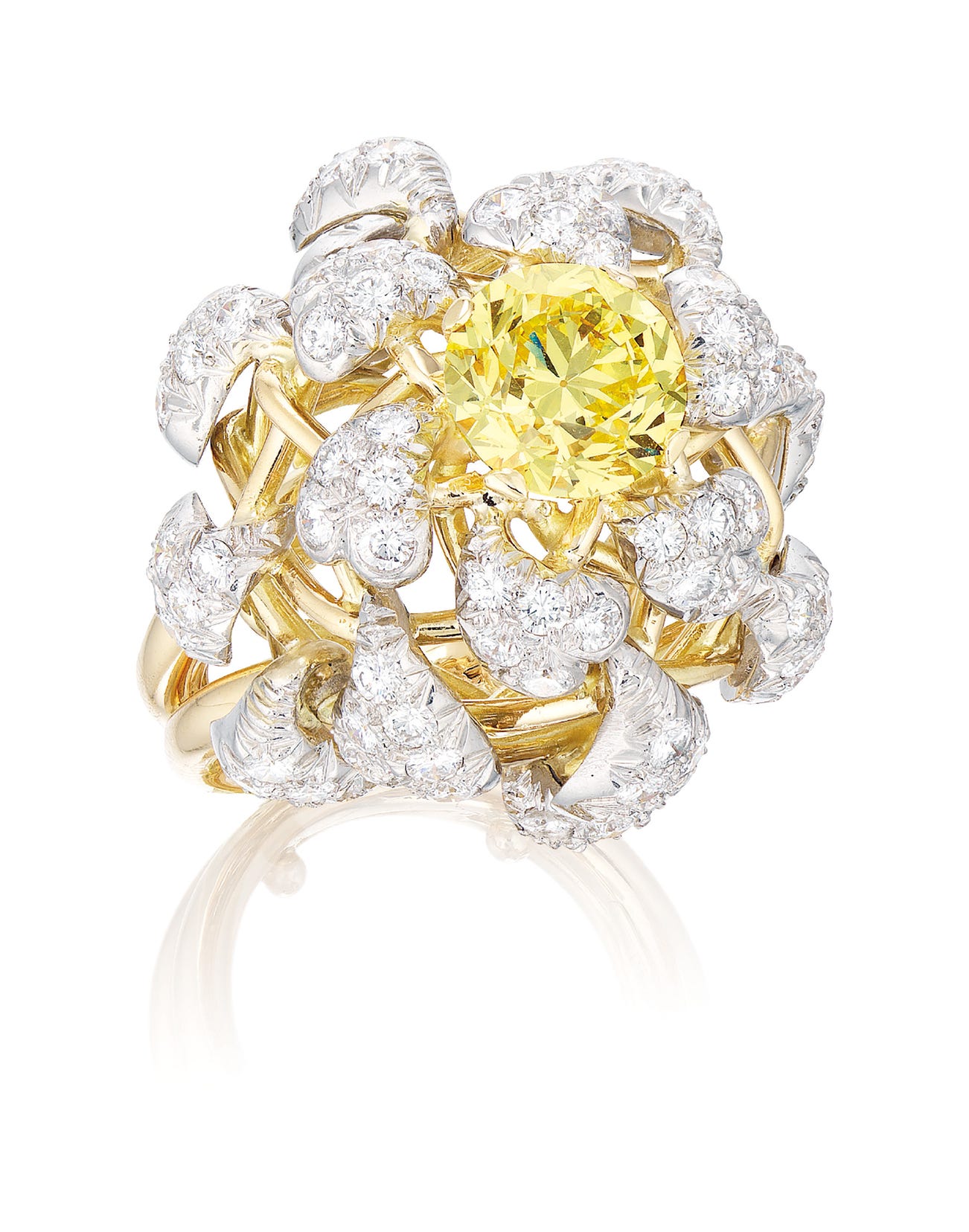 An Unusual Fancy Intense Yellow Diamond and Diamond Ring, Schlumberger for Tiffany & Co., Circa 1960