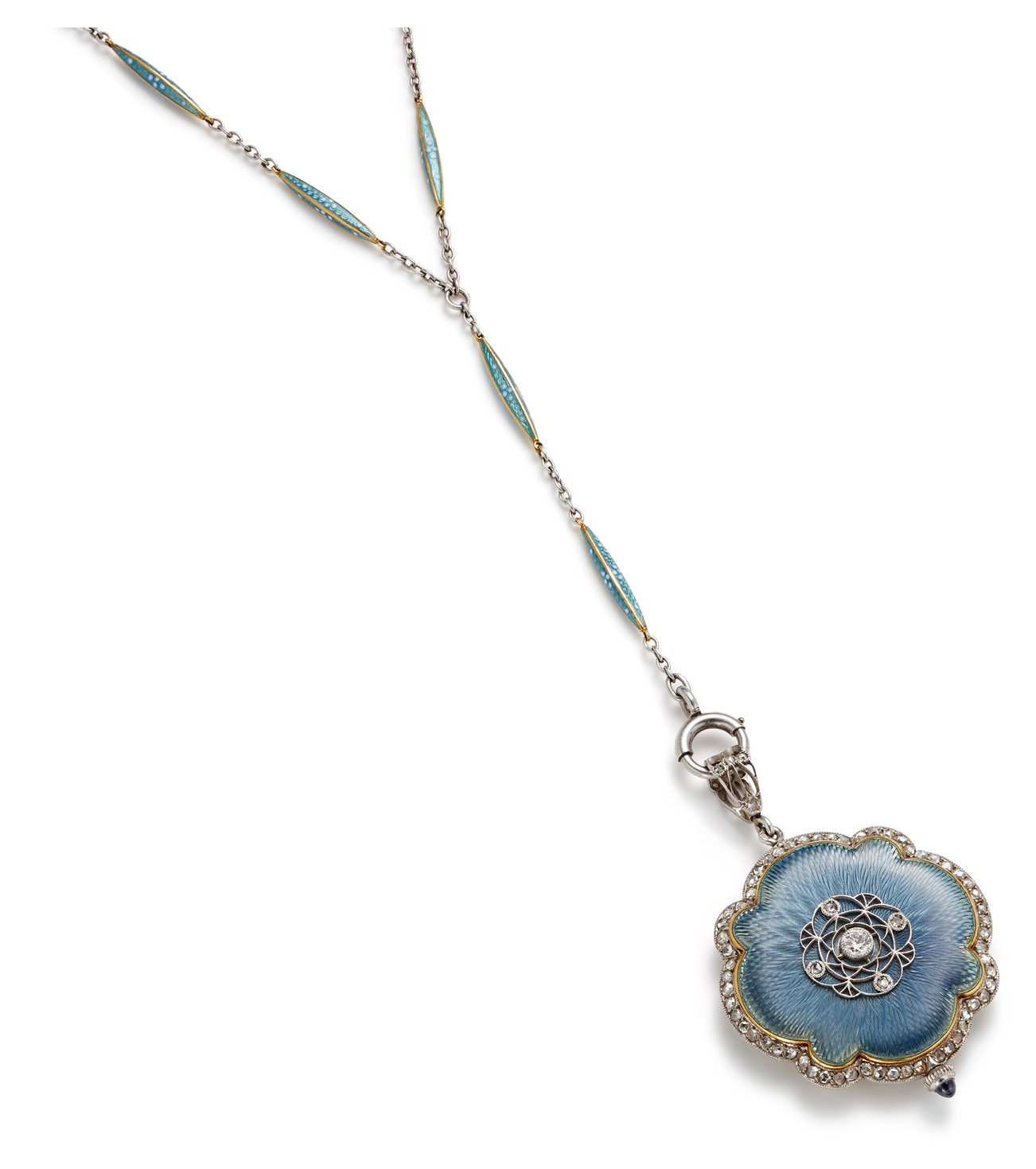 A Belle Époque Diamond, Enamel and Gold Pendant Watch