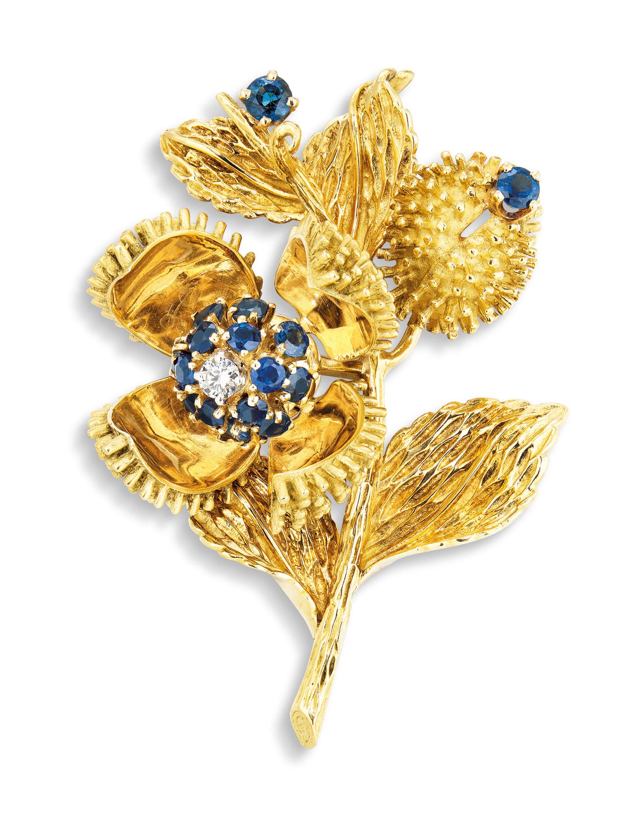 A Sapphire and Diamond 'Thistle' Brooch