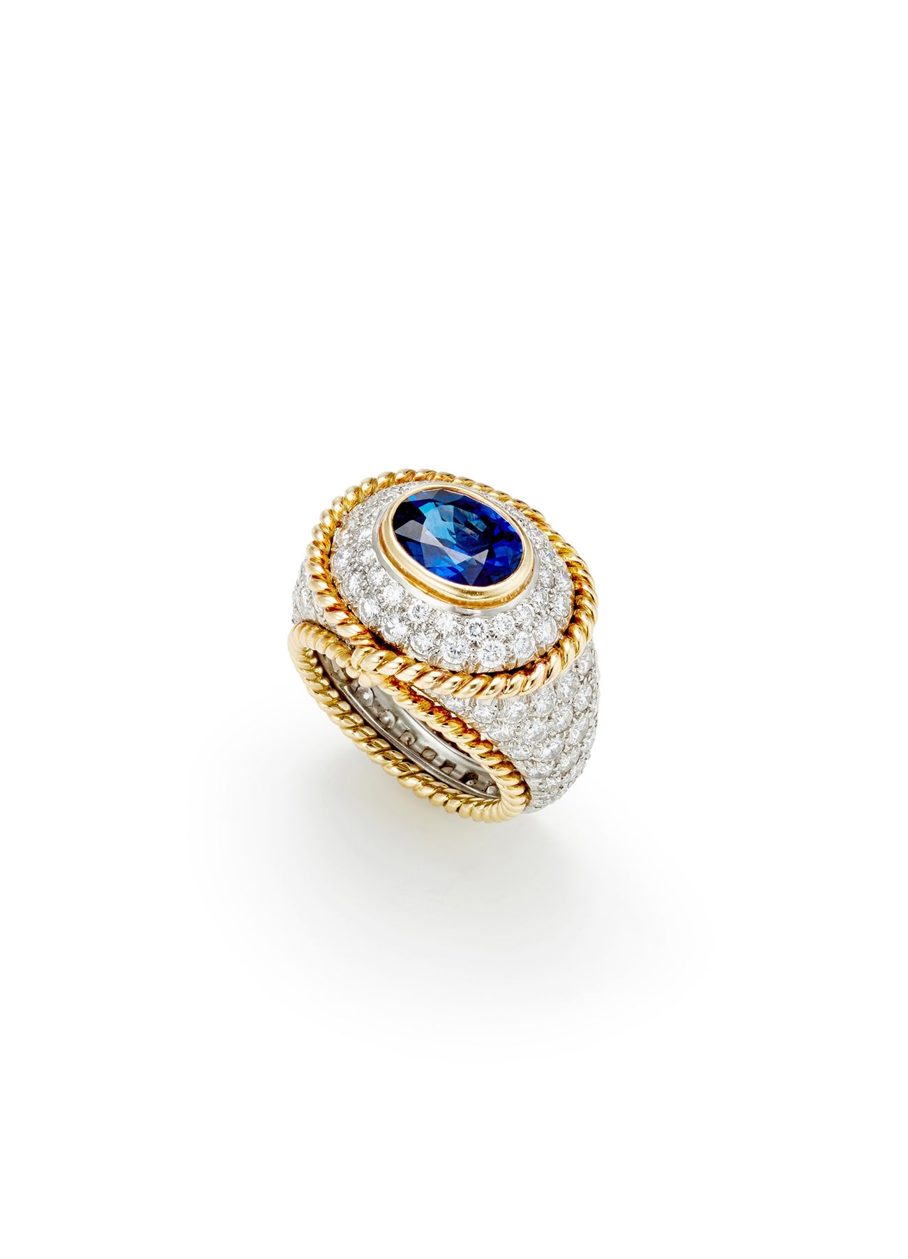 A Sapphire, Diamond, Platinum and Gold Ring