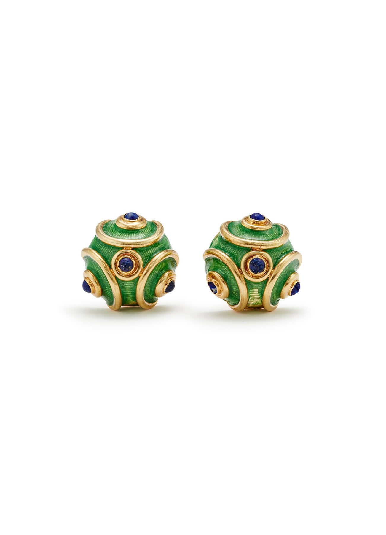 A Pair of Enamel, Lapis Lazuli and Gold Earclips