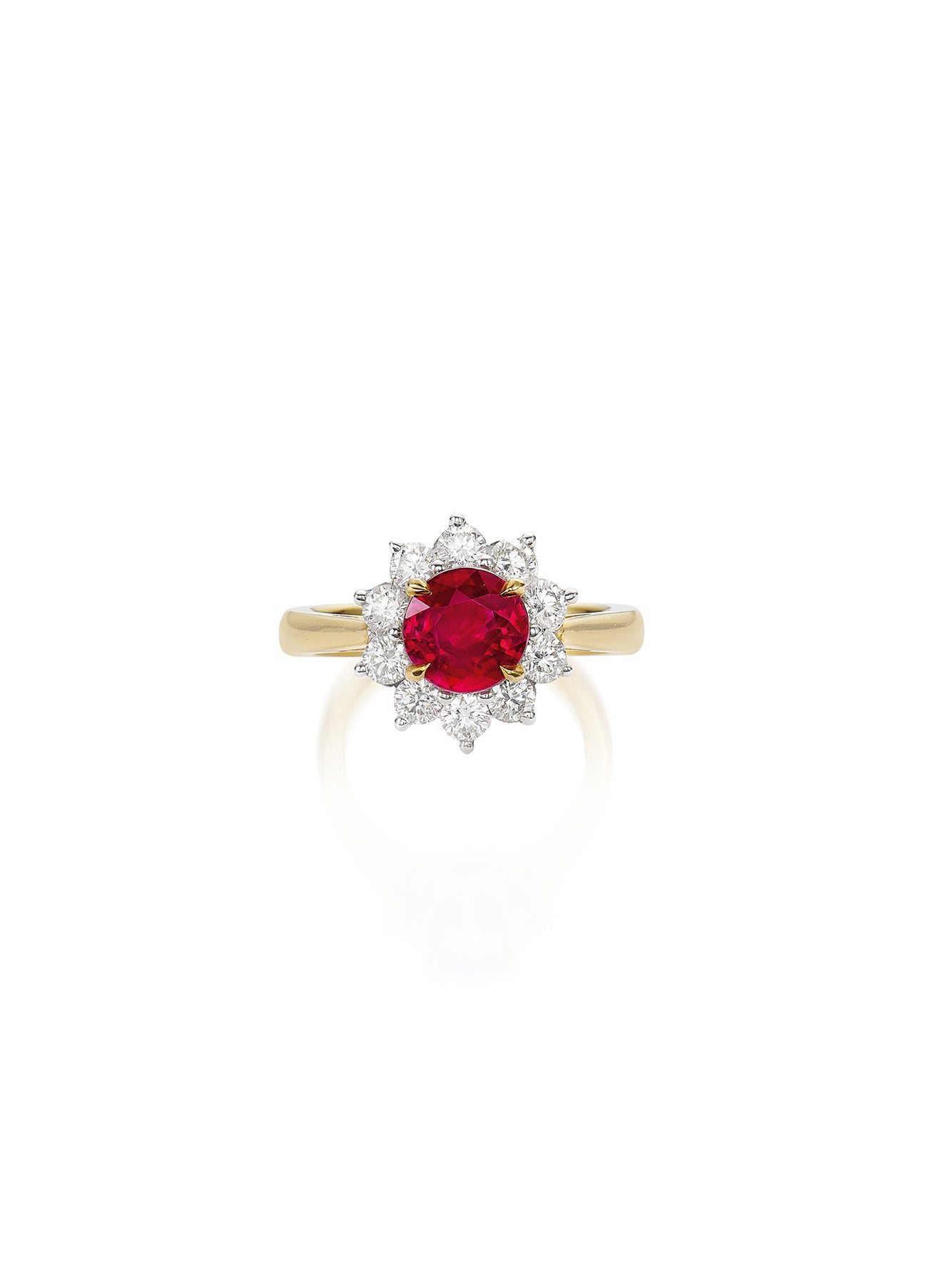 One circular-cut ruby, 2.28 caratsBrilliant-cut diamond surround18K gold and white goldSigned Tiffany & Co.<em>Gübelin Report: Burma, no indications of heating</em>