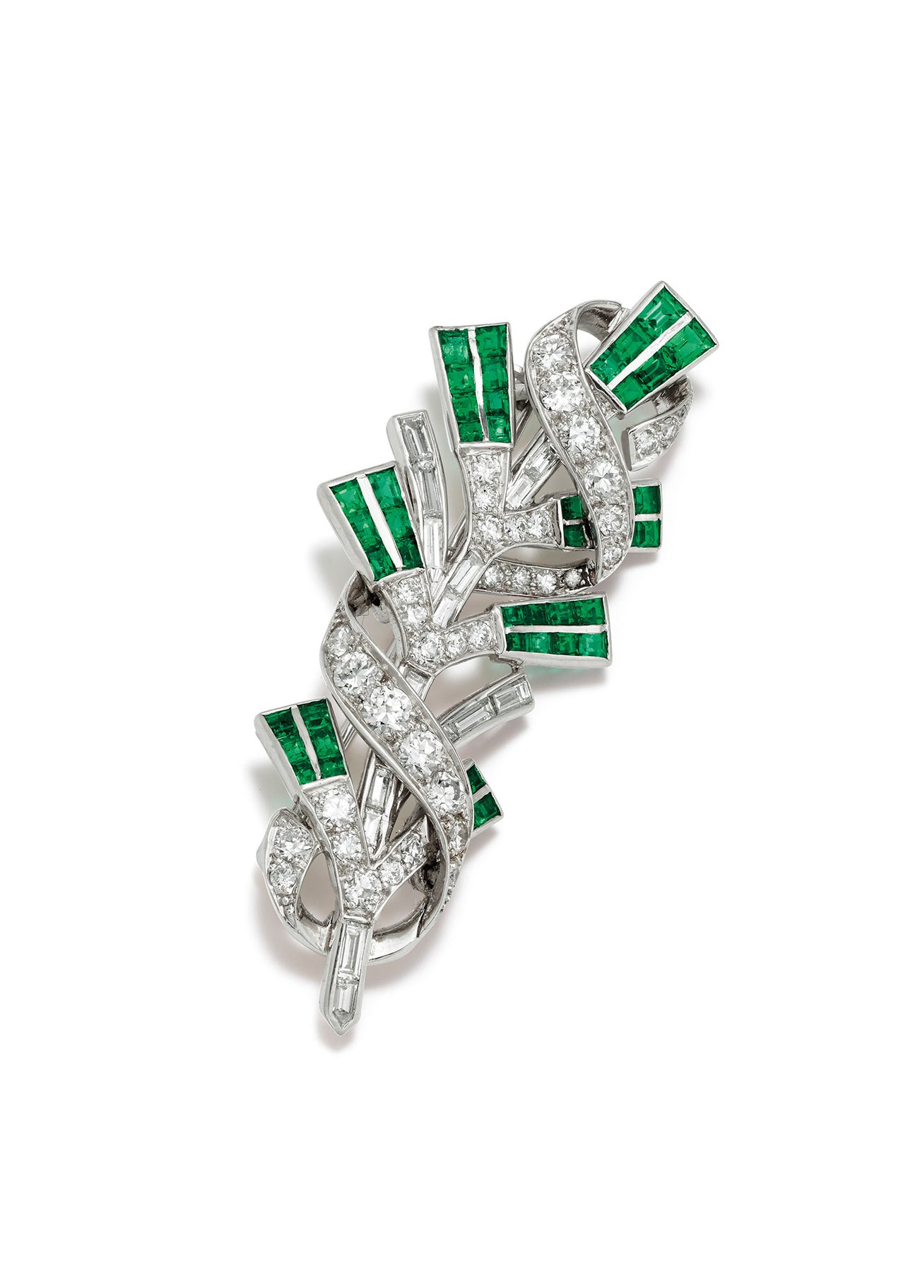 A Diamond, Emerald and Platinum Brooch, Circa 1920