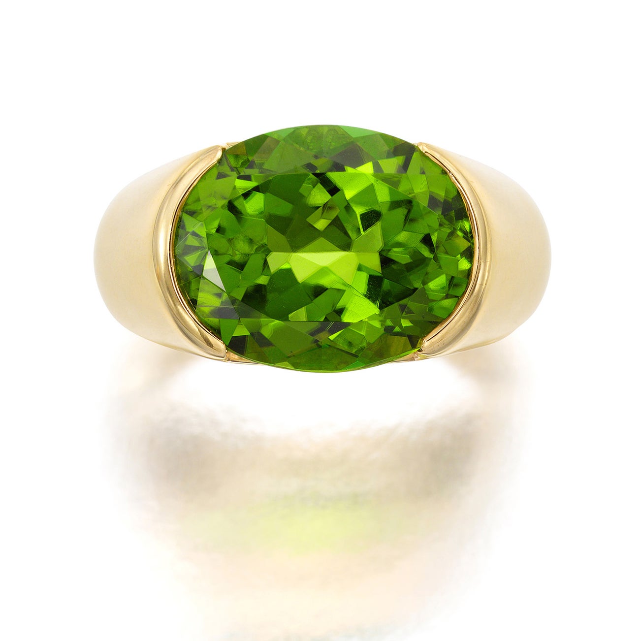 Oval brilliant-cut peridot, approximately 12.05 cts.