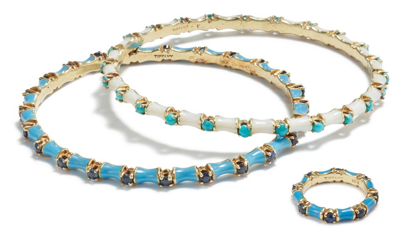 A Set of Enamel, Sapphire, and Turquoise Jewelry