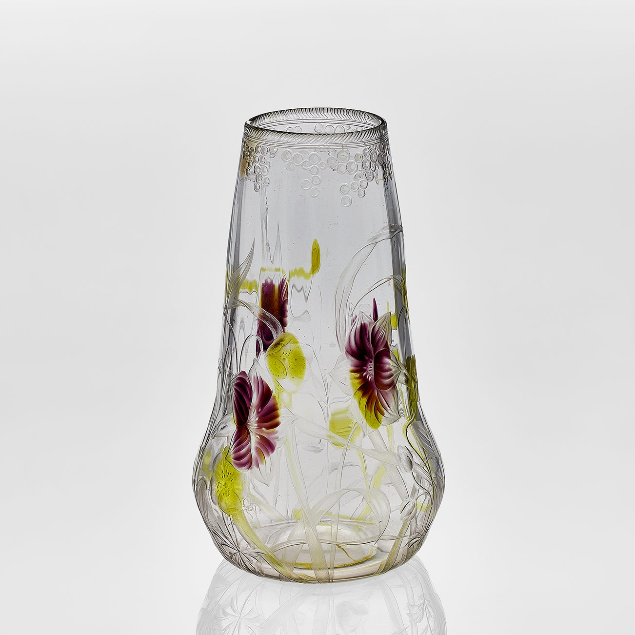 Intaglio and wheel-carved Favrile glass.