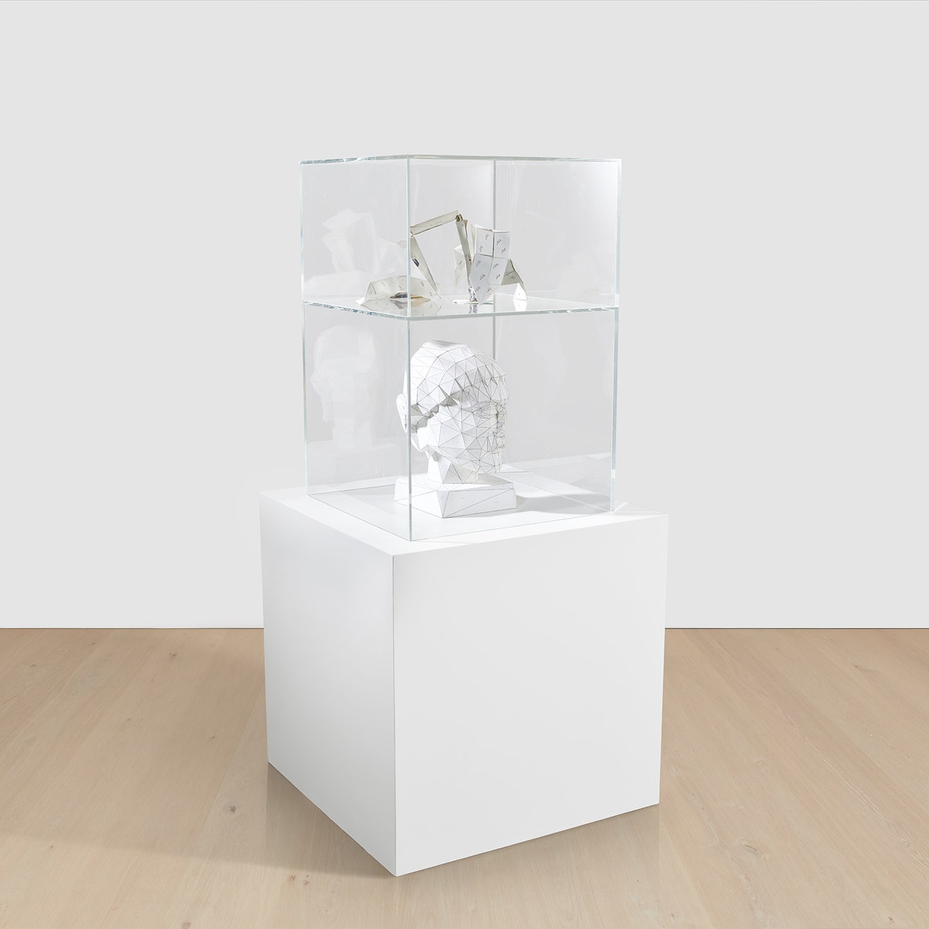paper, PVA, paint and aluminum foil in Perspex vitrines, in 2 parts