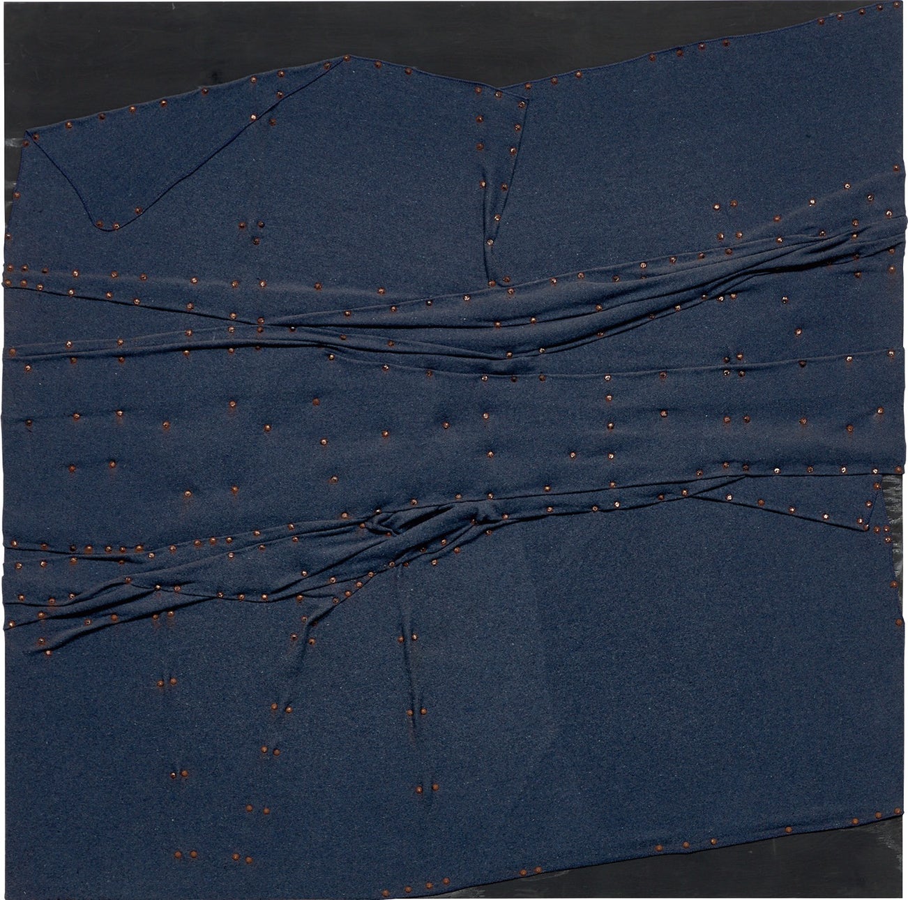 wool blanket and upholstery tacks on painted plywood
