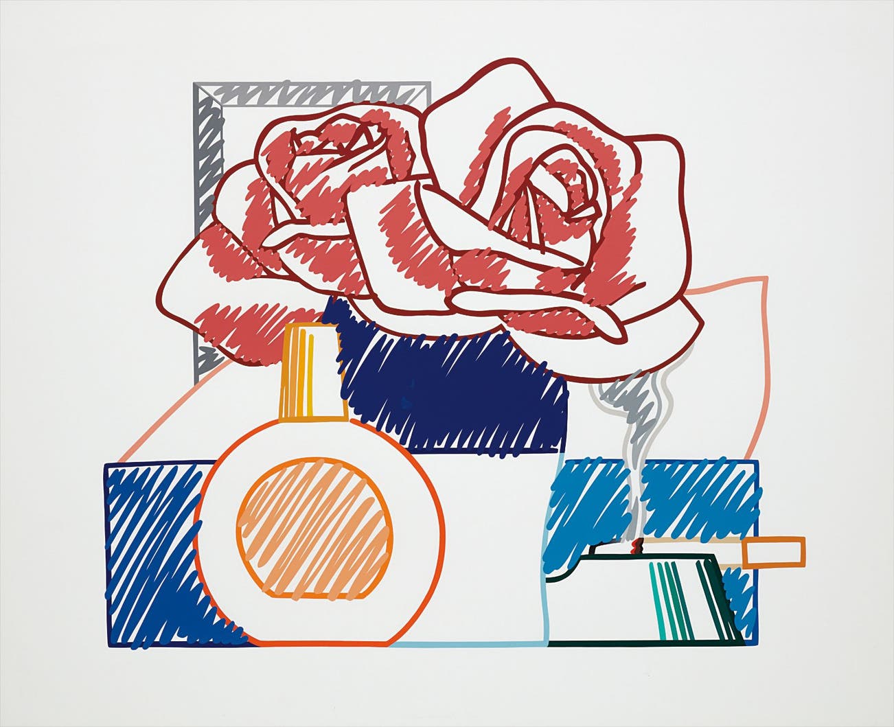Wesselmann considered pop culture objects as exclusively visual elements and incorporated them in his works as pure containers of bold color. This color palette became the foundation for his now-iconic suggestive figurative canvases, often depicting reclining nudes or women's lips balancing a cigarette.